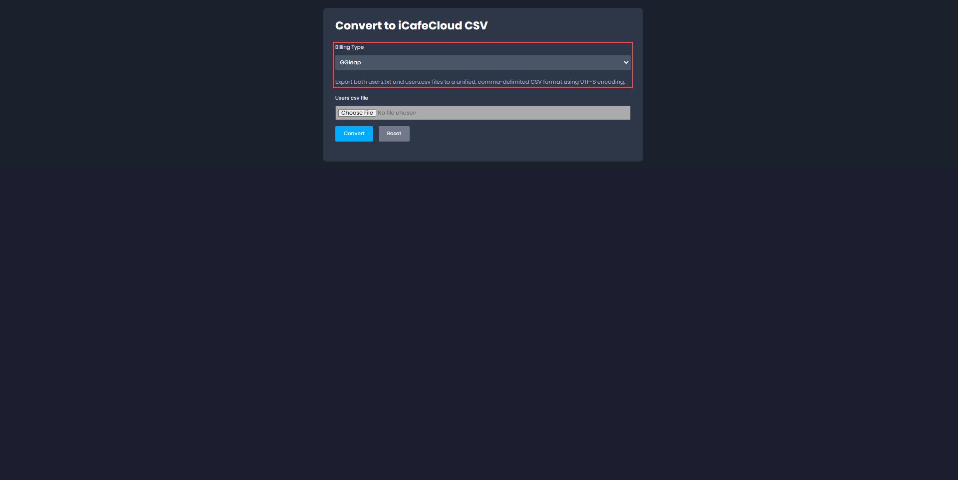 Game : Select the game from the dropdown.