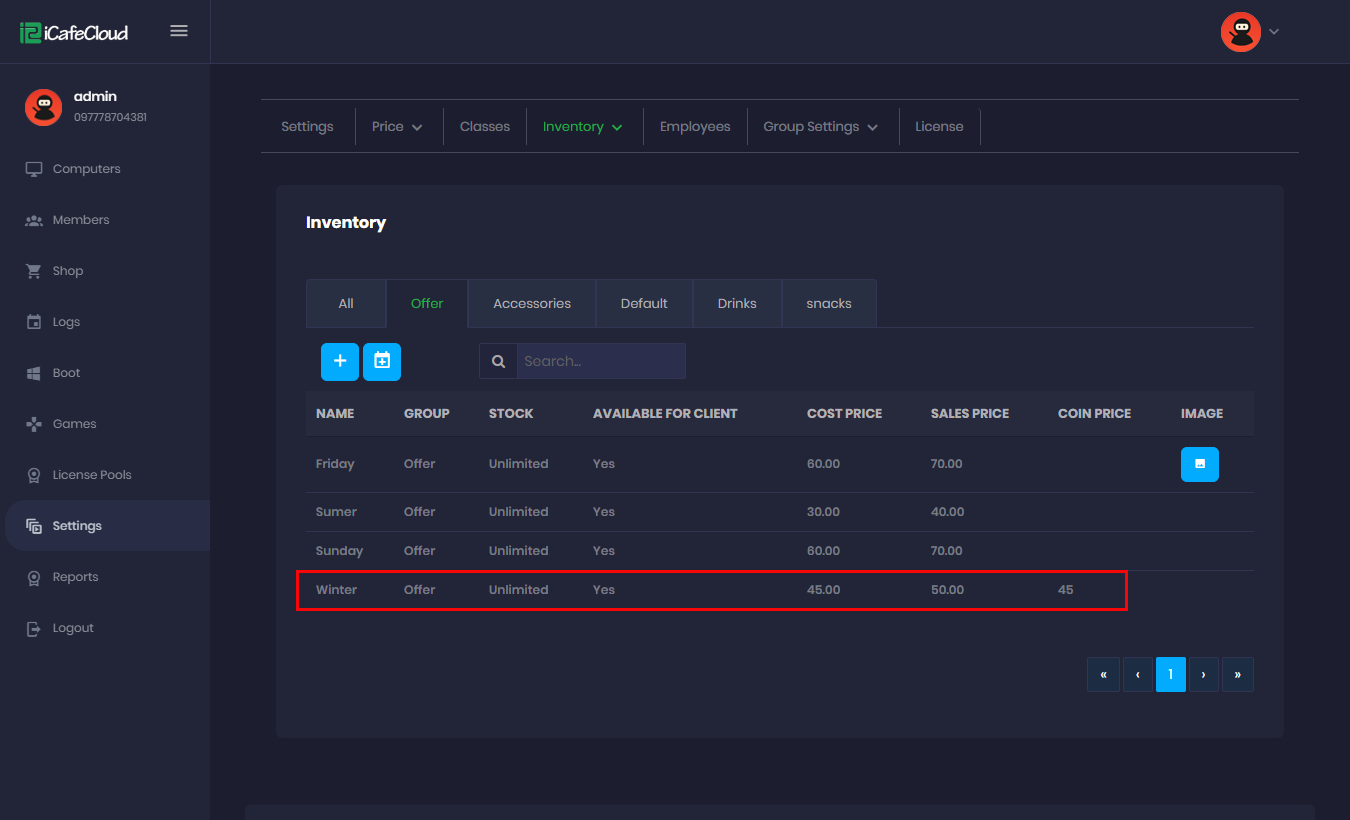 - To hide an offer from both the SHOP (admin panel) and the client, add an asterisk (*) before its name. Example: *Night Offer.