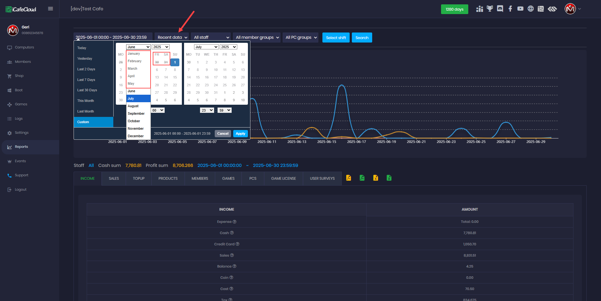 The following explains how to use date ranges to filter reports for specific dates, employees, shifts, pc groups or member groups.