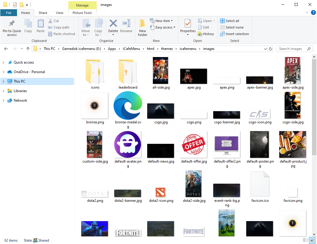 - If you have customized the iCafeMenu interface or changed the background image and need to restore the default image files, you can find them at: