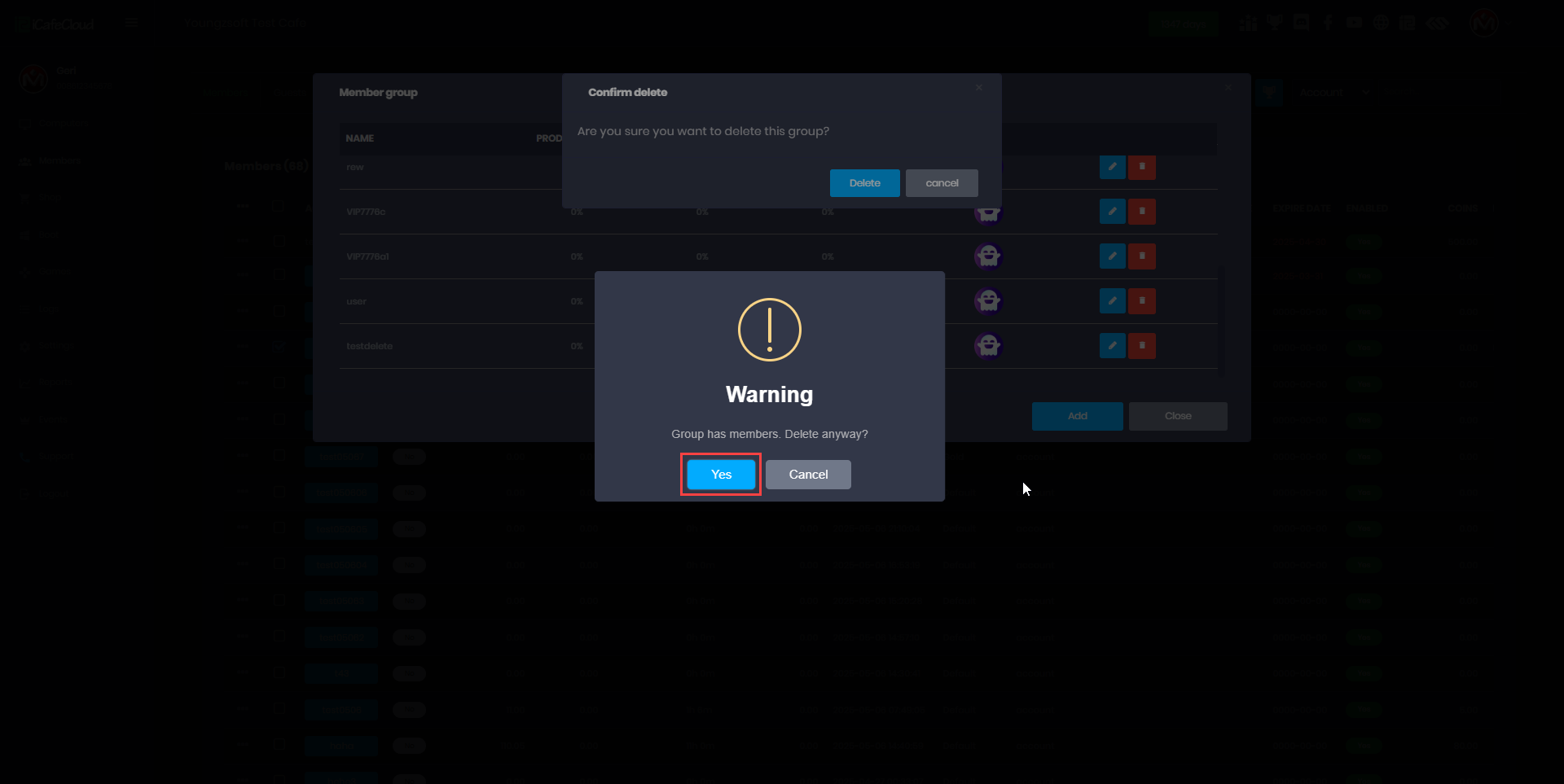 - A warning notification will pop up, informing you that the group is currently assigned to members and asking you to confirm whether you still want to delete it.(Figure 3)