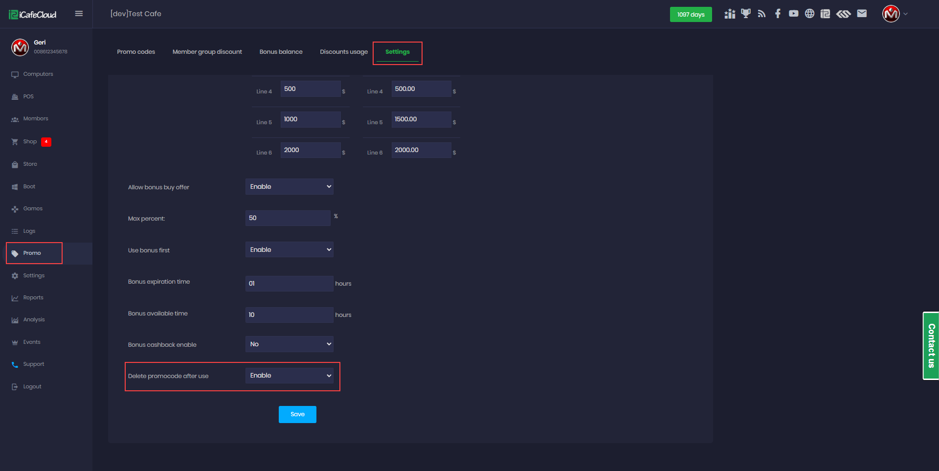The following explains how to configure the promo settings to automatically delete a promo code after it has been used.
