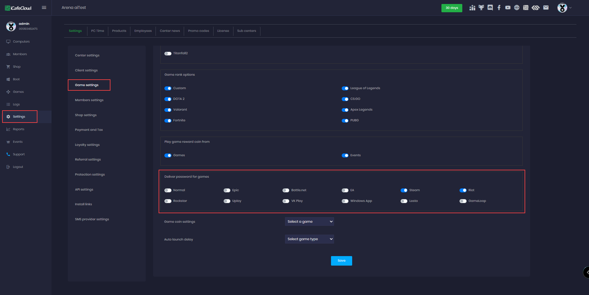 - Go to setting - game setting at deliver password for games enable one of the launchers in the list (Figure 1)