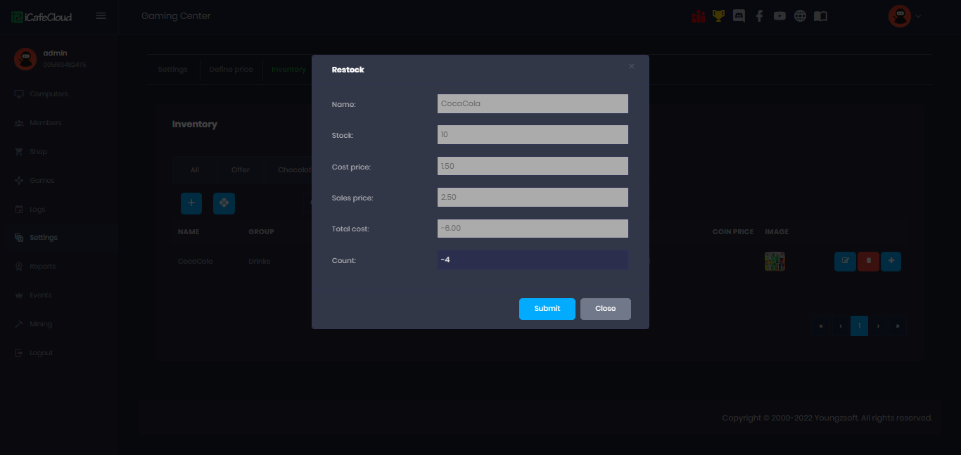 Only the administrator/Manager has the authority to destock. The staff member cannot destock even if the employee access setting has granted him or her the authority to restock (Figure 3).
