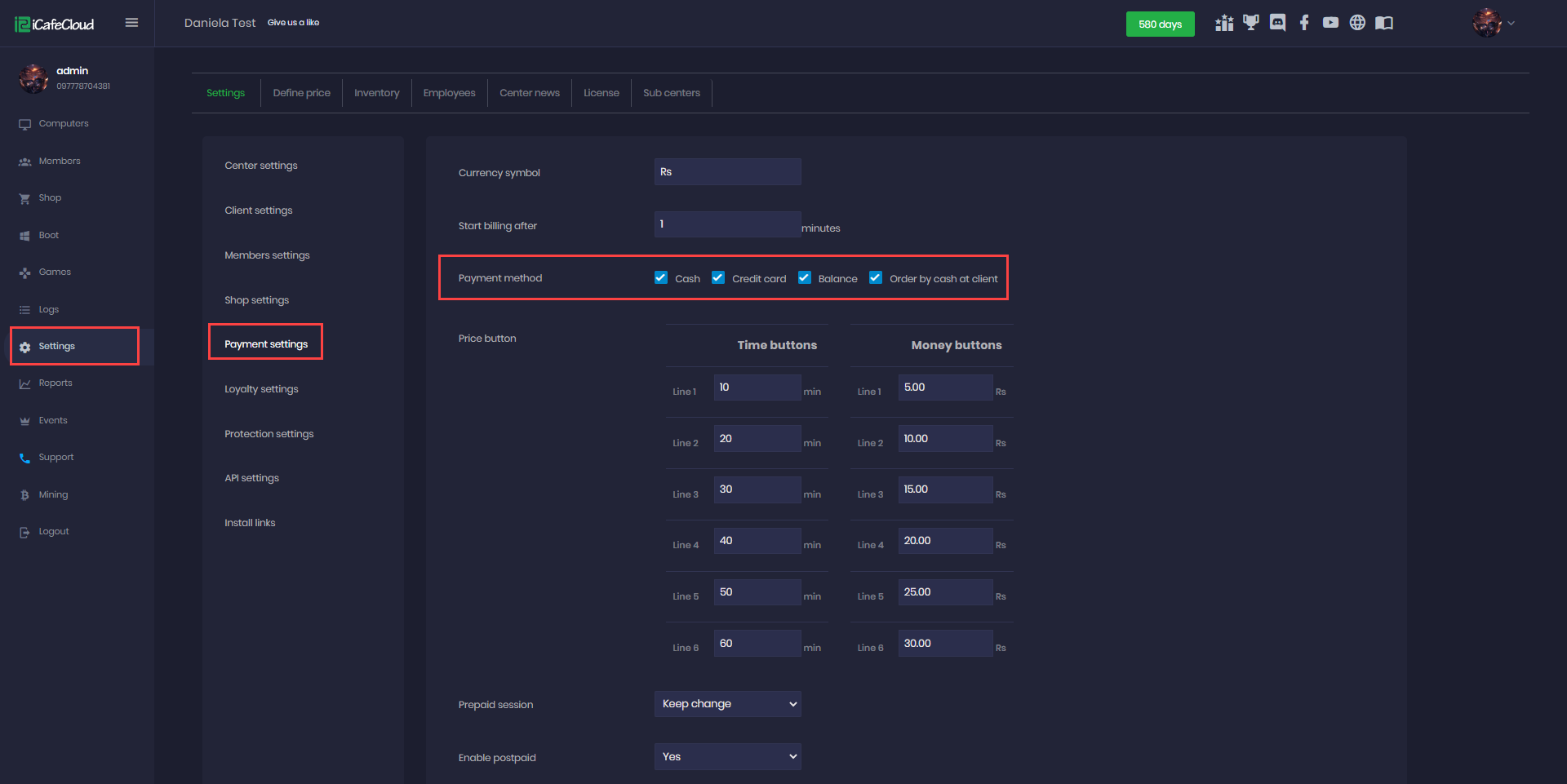 - We have different payment methods such as cash, credit card, balance etc. Follow the following steps to set the different payment methods: