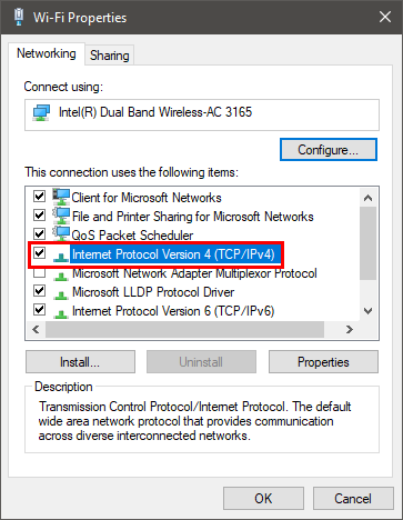 - Open the properties of network settings and click the “Internet Protocol Version 4 (TCP/IP)” option (Figure 1).