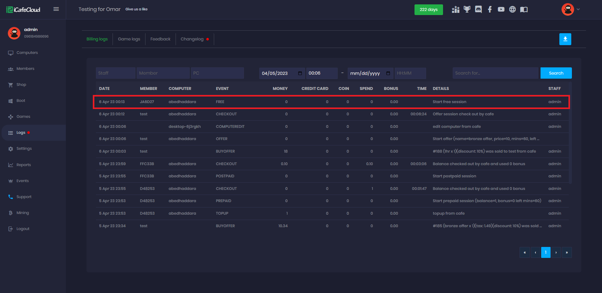 This section explains how admins or employees with permissions can start a "Free Time Session" from the iCafeCloud panel.