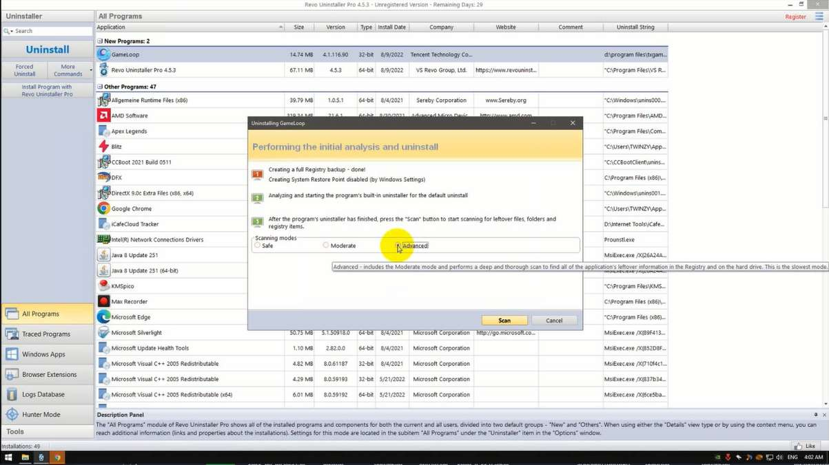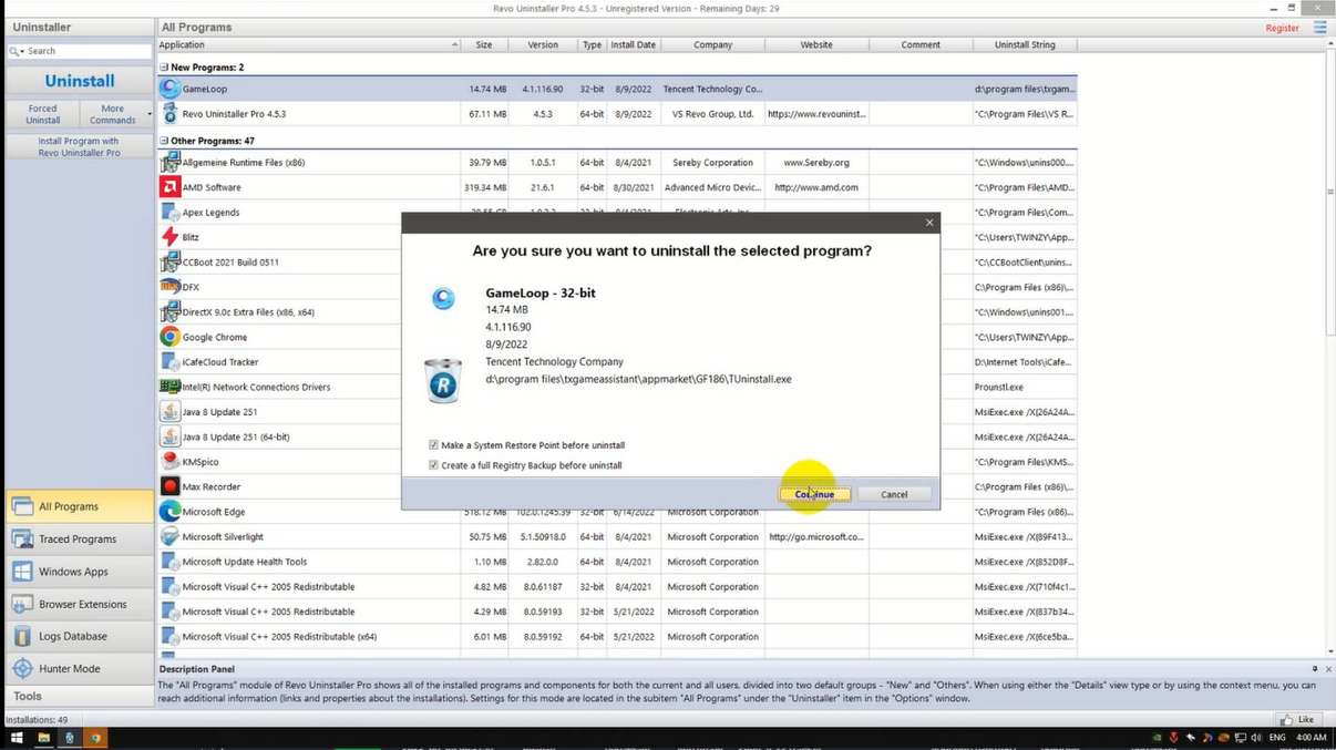 - Unistall Gameloop by using revo uninstaller or any other uninstaller you prefer.