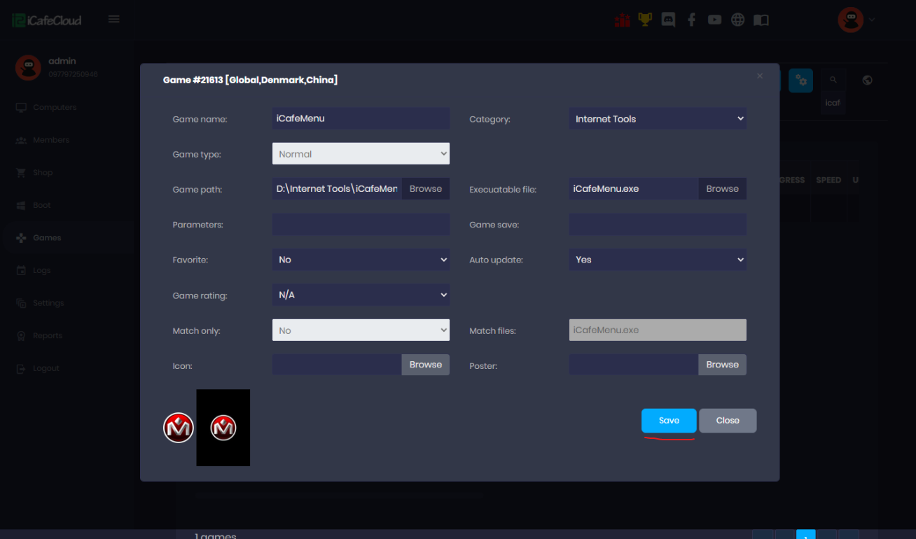 - Login to the iCafeCloud panel using the license, username and password.