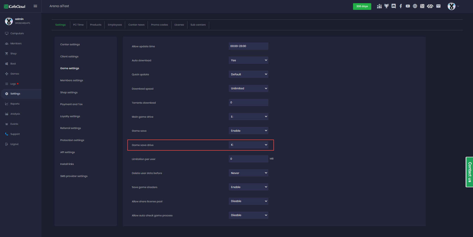 - If the disk where iCafeCloudShare is located is running out of space and you want to move the shared folder to a larger disk, change the game save drive letter to the new disk and click 'Save.' This will automatically create a new iCafeCloudShare folder on the new disk.