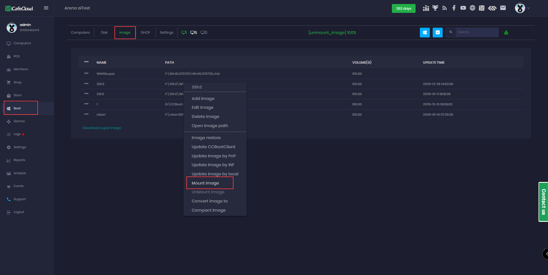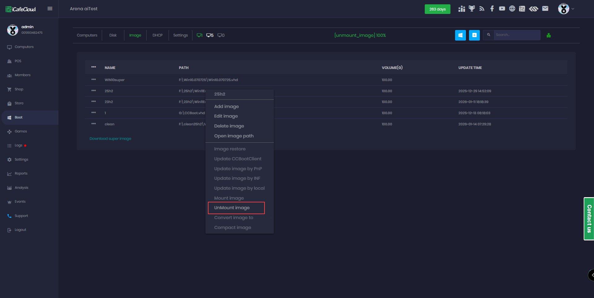 - Then go to the Boot section → Images and unmount the image (Figure 5).
