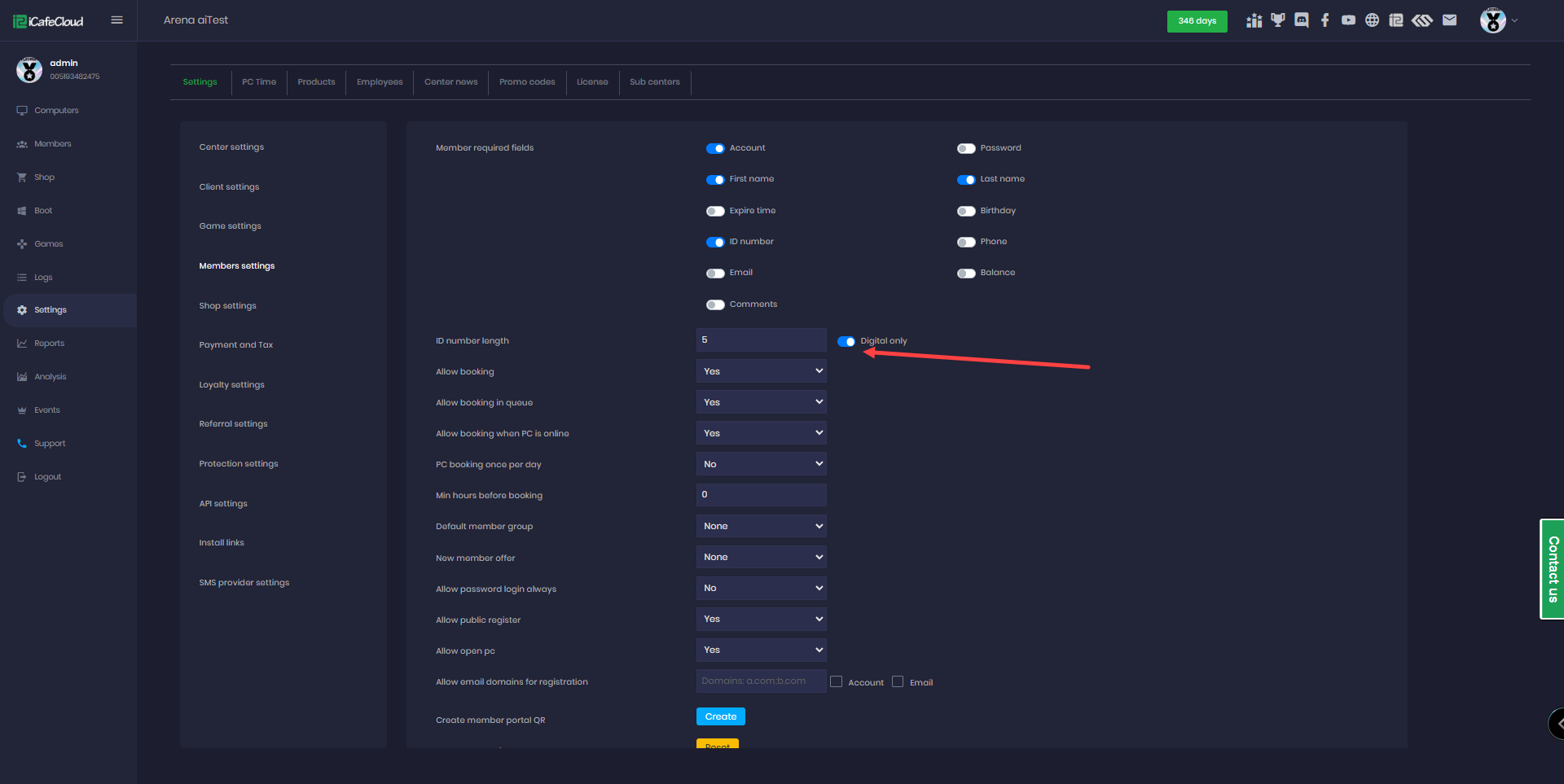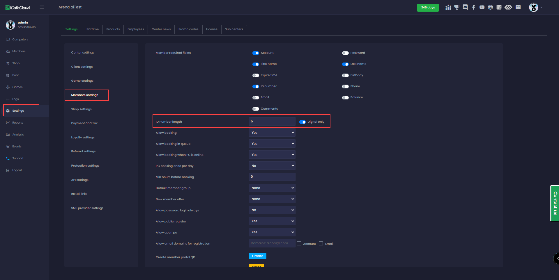 - Go to Settings → Member Settings, find the “ID Number Length” option, and enter the number of digits you want the member ID to have. (Figure 1)