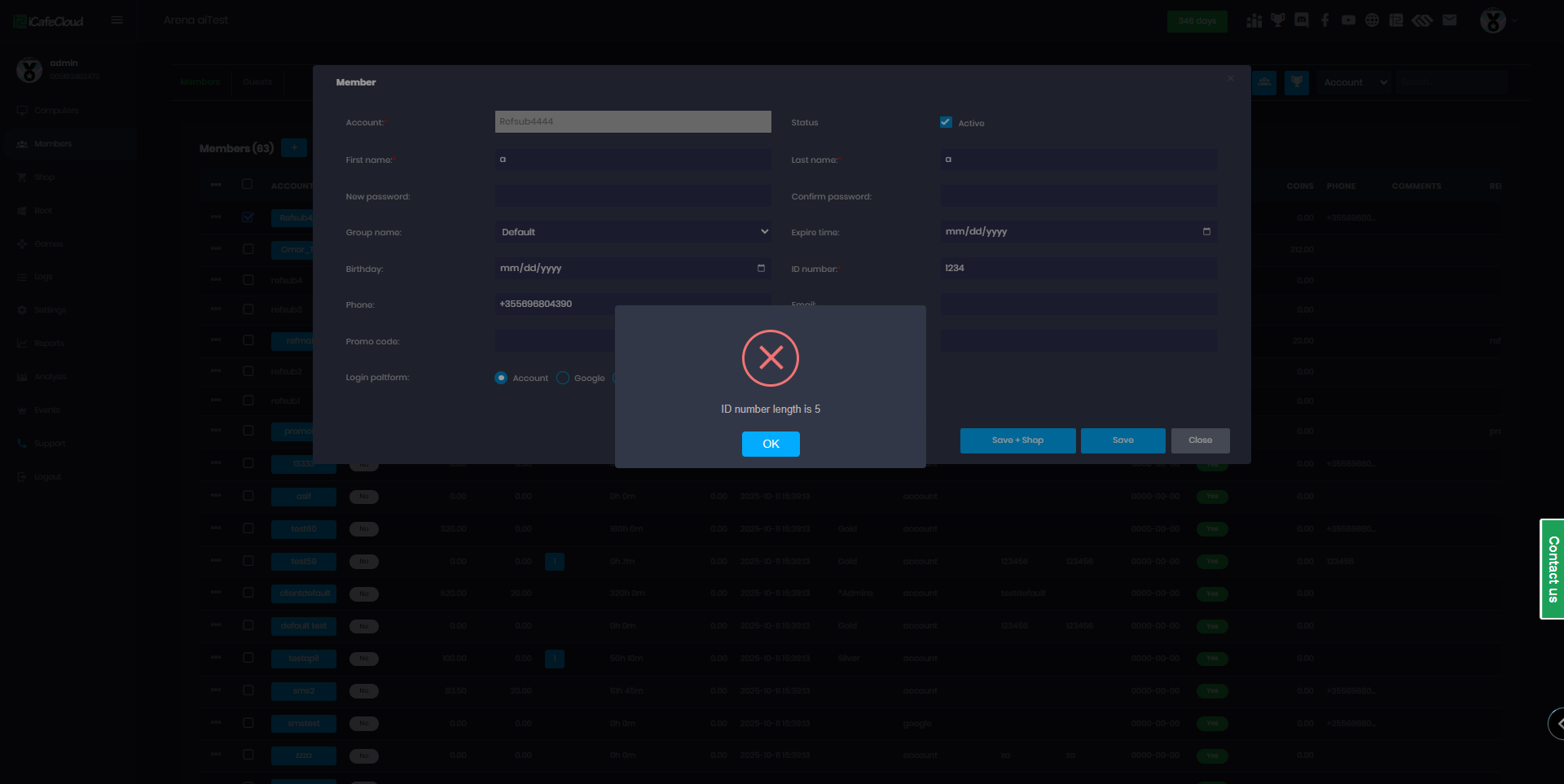 The following explains how to configure the ID of member to be in certain length and use only digits or not