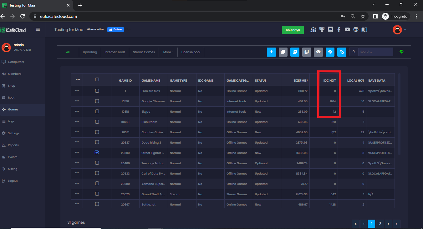 IDC Hot represents the number of times the game has been played in the last 30 days. (Figure 3).