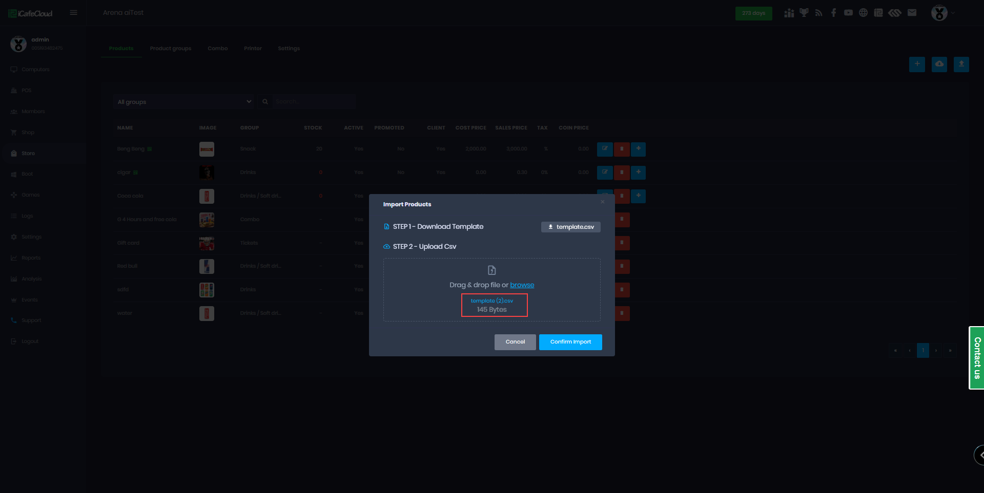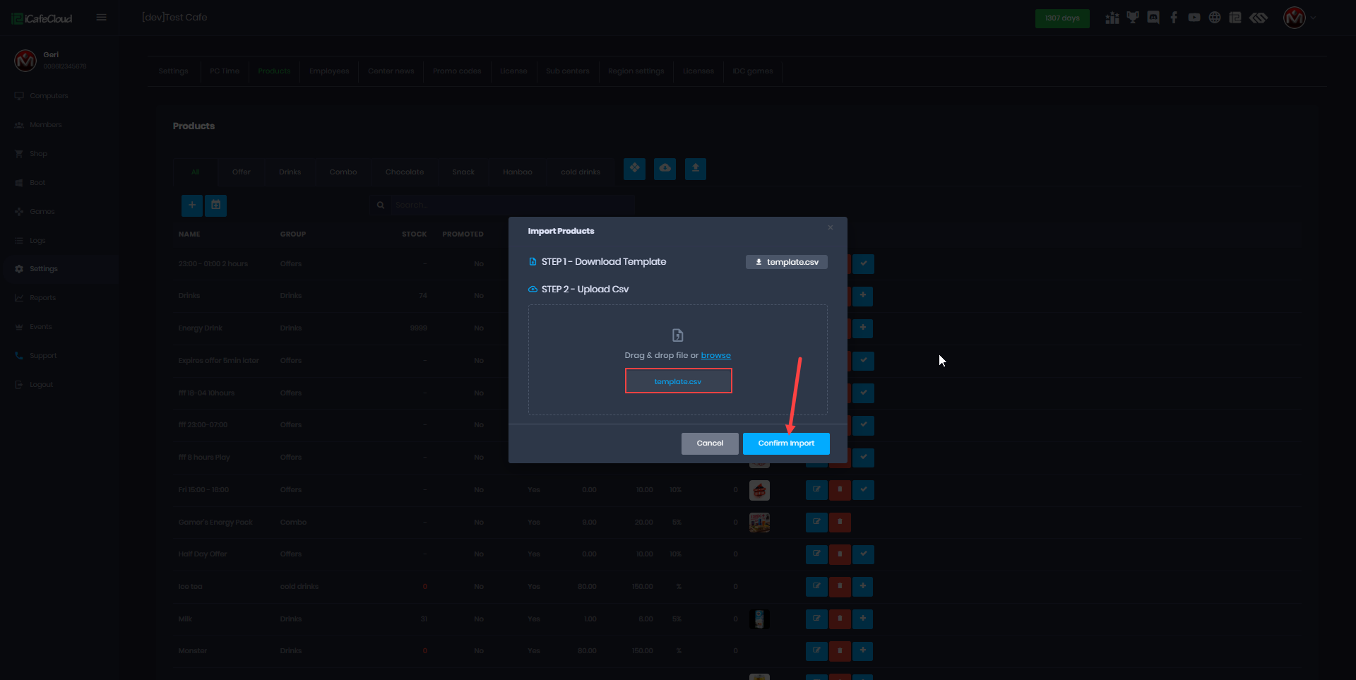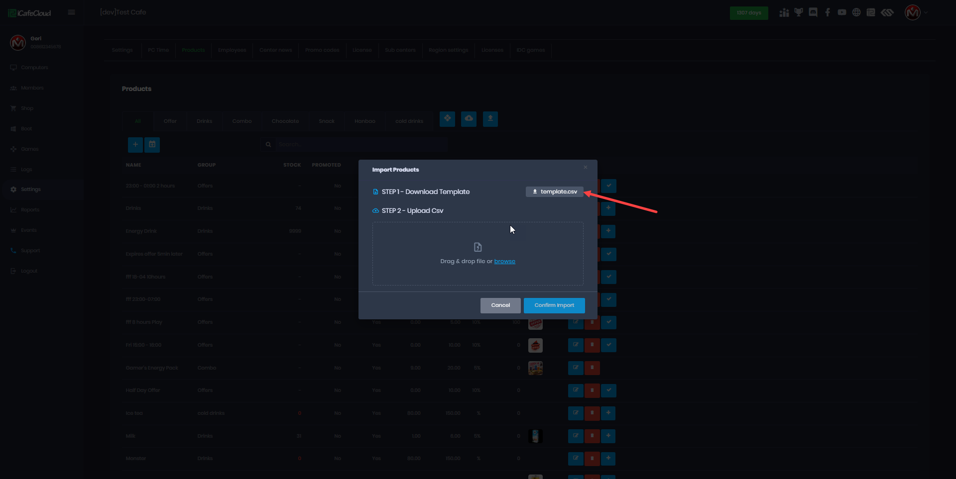 The following explains how to import products to your license from a CSV file. This can be used for drinks, food, and other products, and also to import items from other software systems.