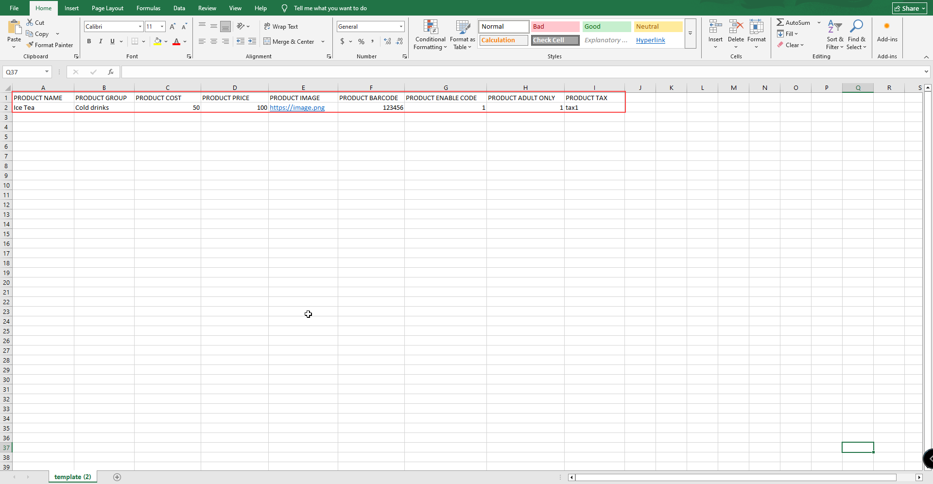 - Once downloaded, you’ll see the columns required for import. You can edit the CSV file using these existing columns as a guide.(Figure 3)