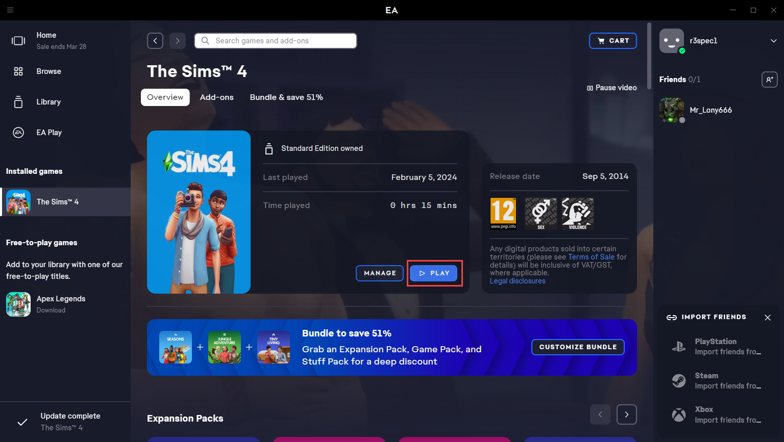 EA games need to be installed on default path: C:\Program Files\Electronic Arts\EA Desktop\EA Desktop.
