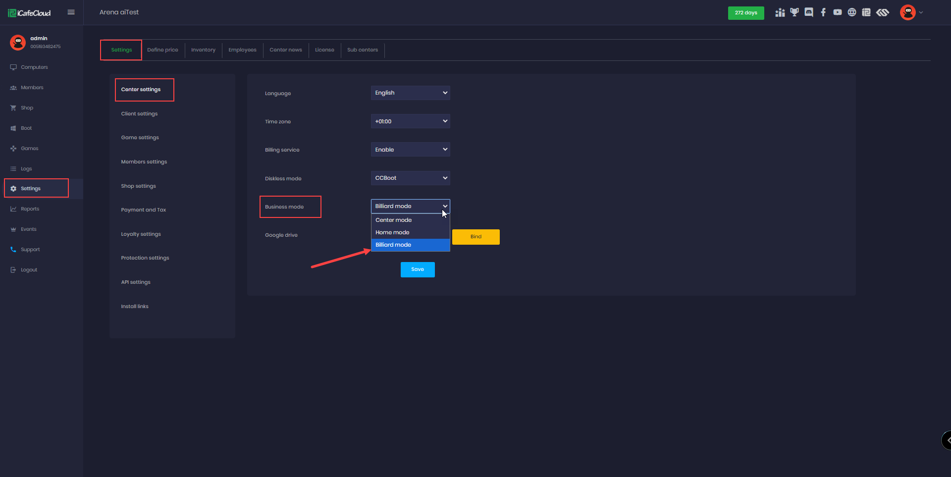The following explains how to enable billiard mode on the iCafeCloud admin panel.