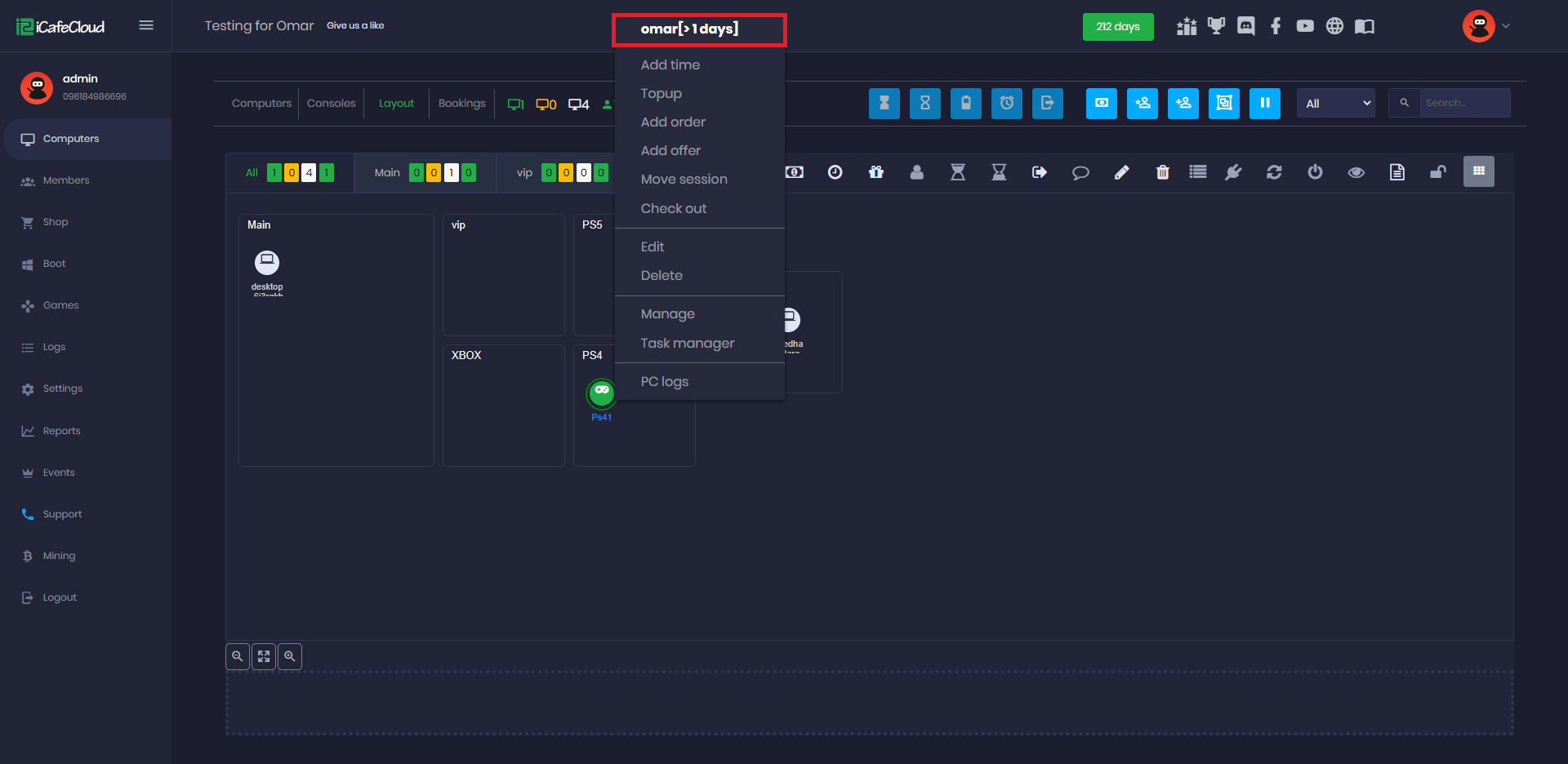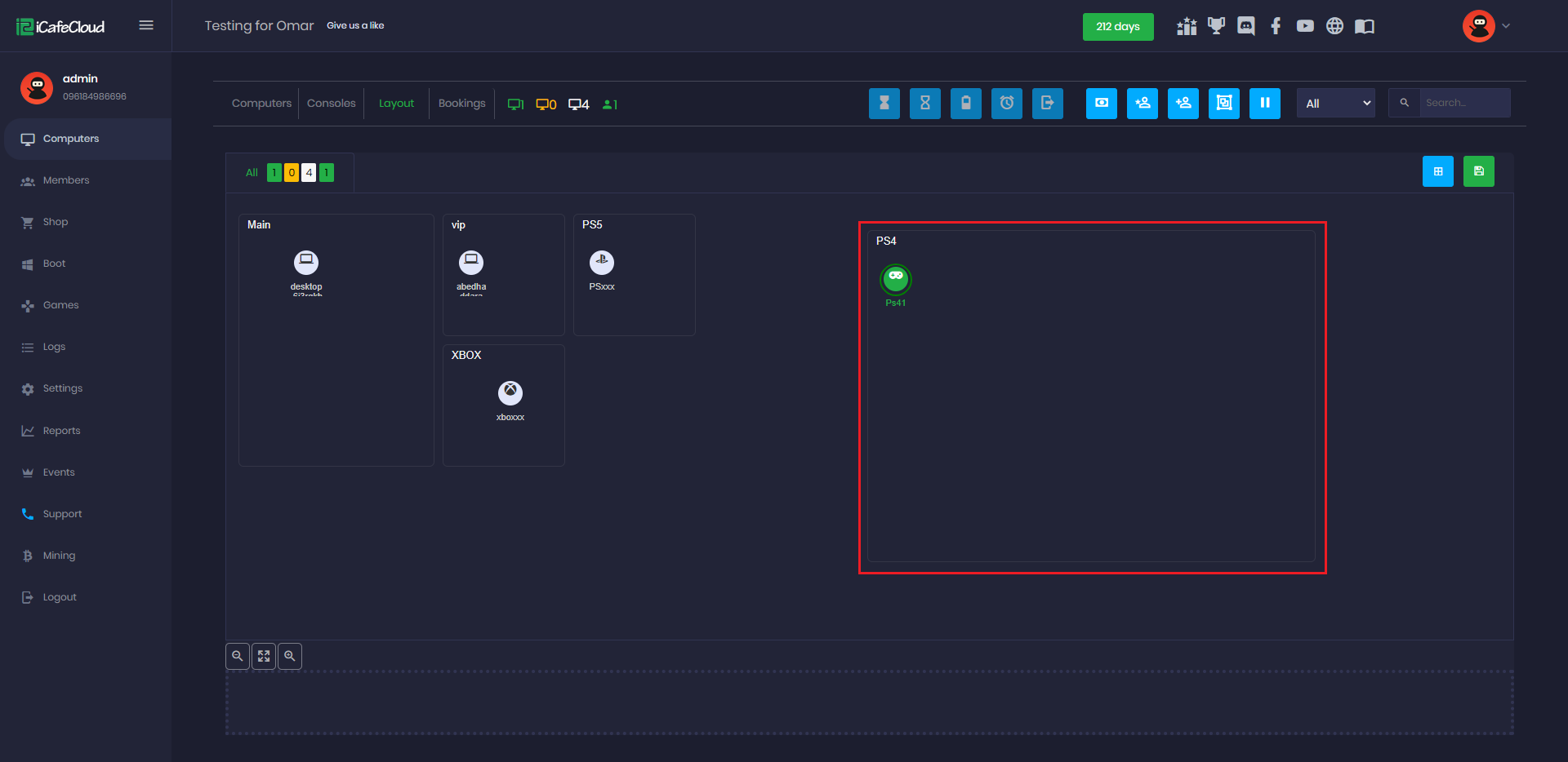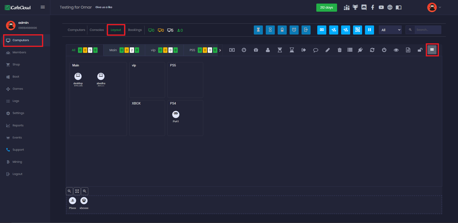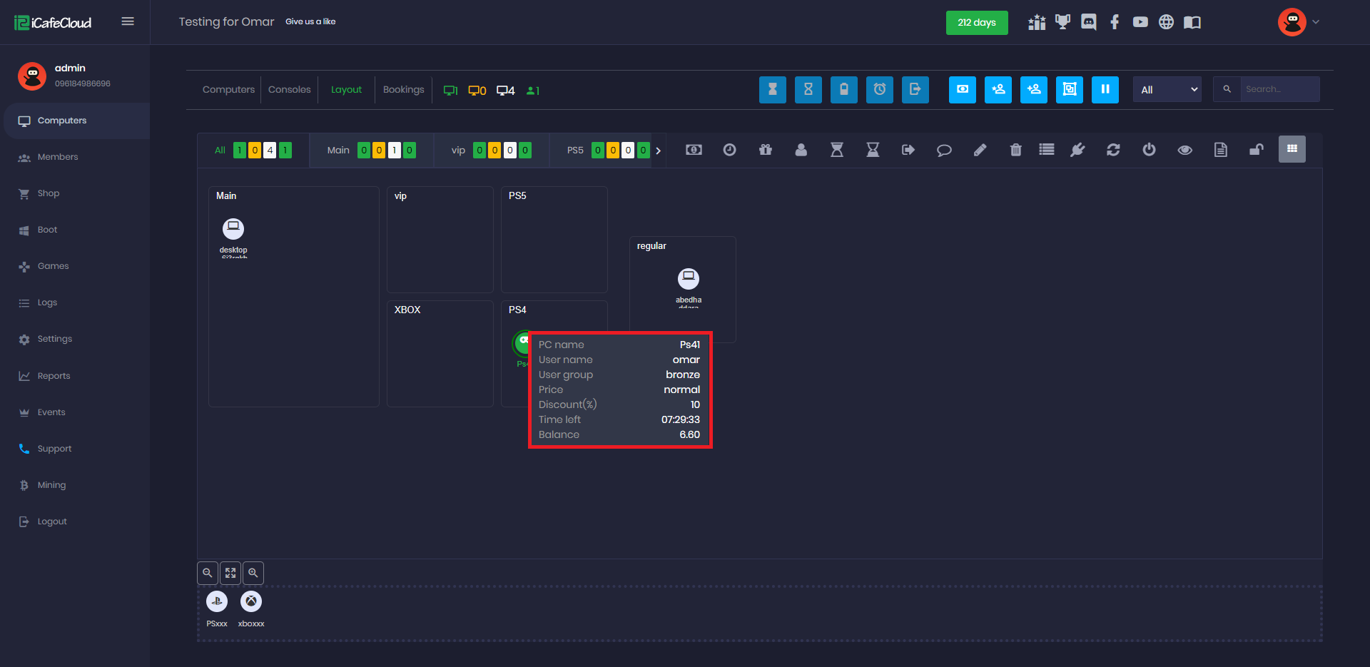 The graphic view layout allows you to set the order of the PCs as they are placed in the cafe. So when a customer does not know the number of PCs, he can just tell the cashier where the PCs are placed. The cashier can find a few free PCs that are close to them.