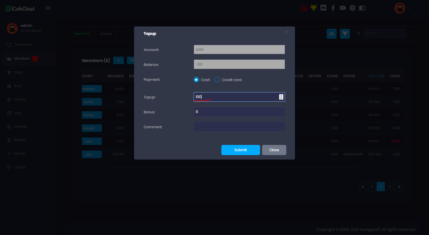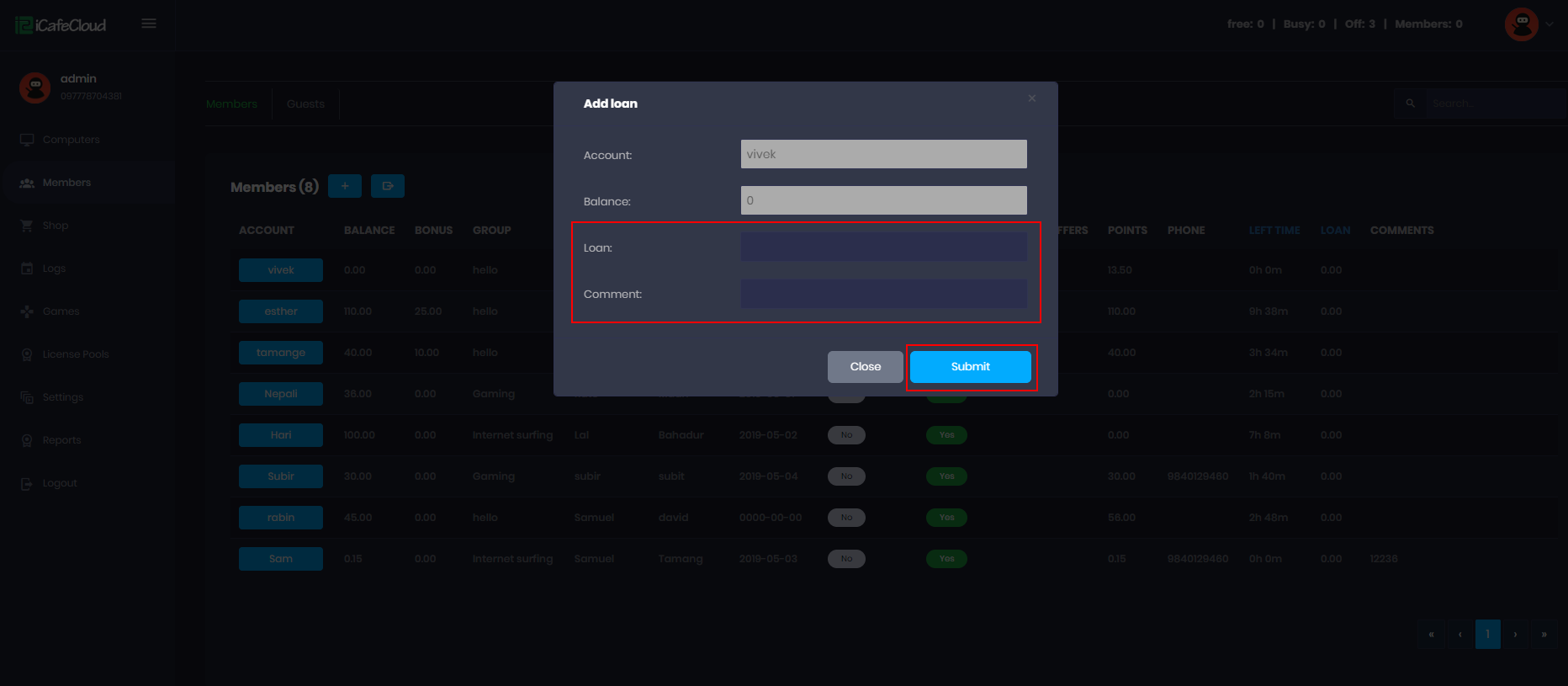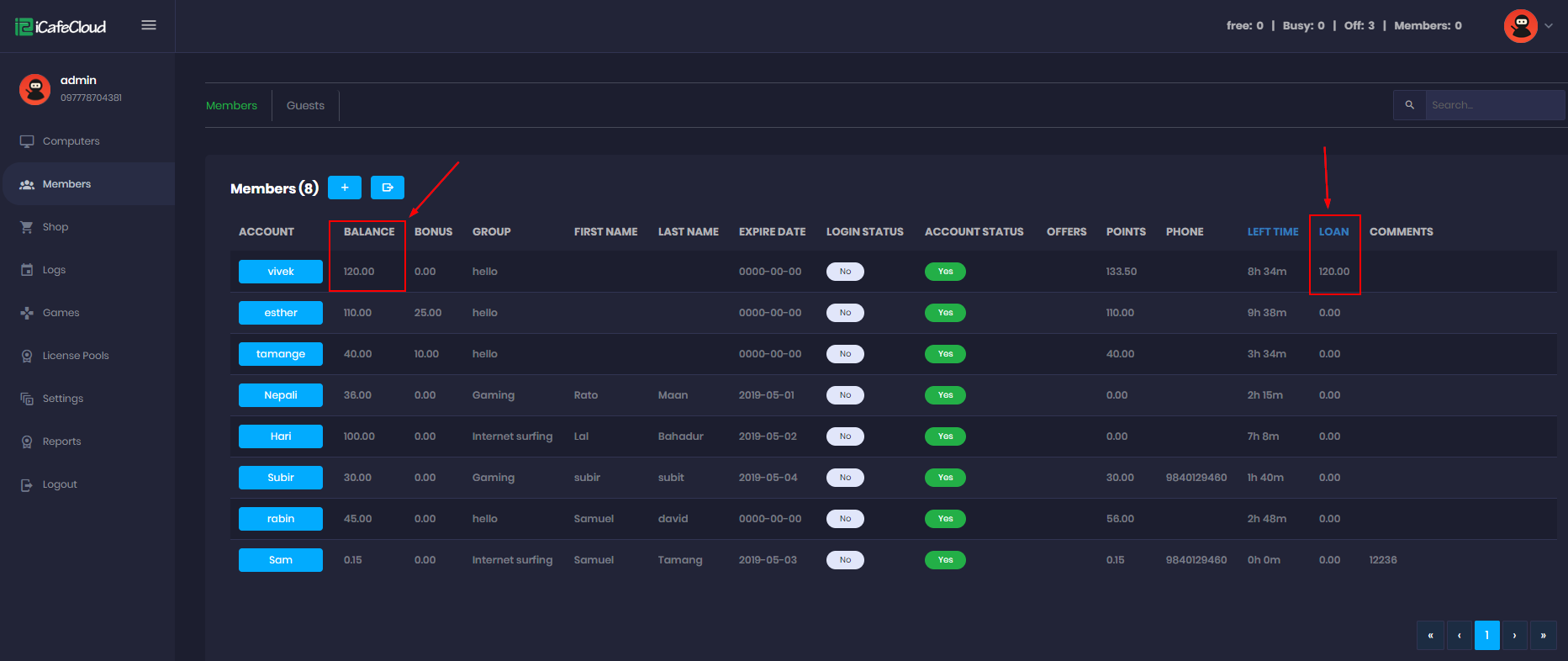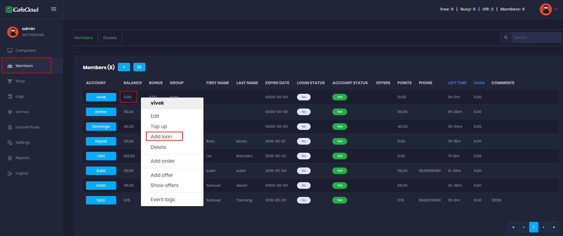 iCafeCloud provides a loan function which means the owner can let members play on credit. To use loan function, follow the steps below: