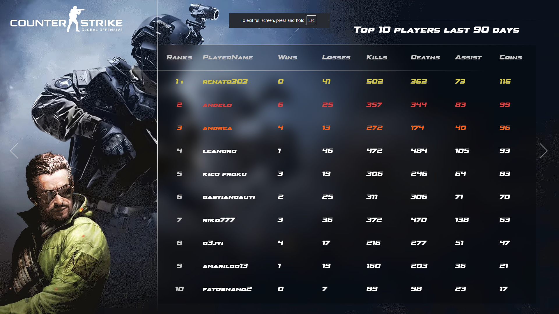 - The game ranking page will open in a new tab, displaying the top 10 players based on scores from the last 90 days (Figure 3).