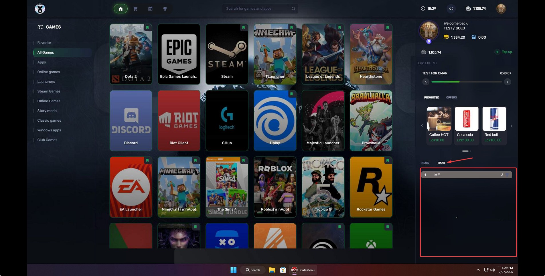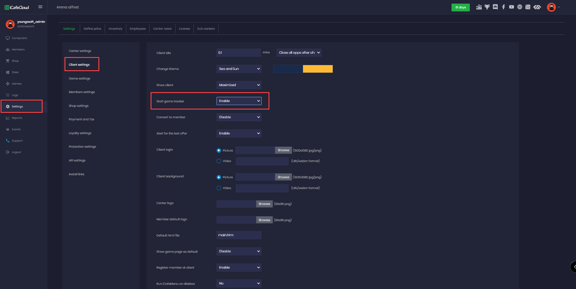 - To hide the ranking from the client side, go to Settings > Client Settings, disable "Allow Game Tracking", then click "Refresh" on the iCafeCloud server app and restart the client PC. (Figure 1).