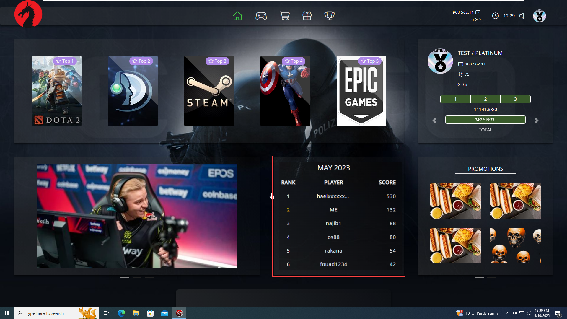 - The home page of iCafeMenu's client side will display the top 6 players based on scores from the last 30 days. (Figure 4).