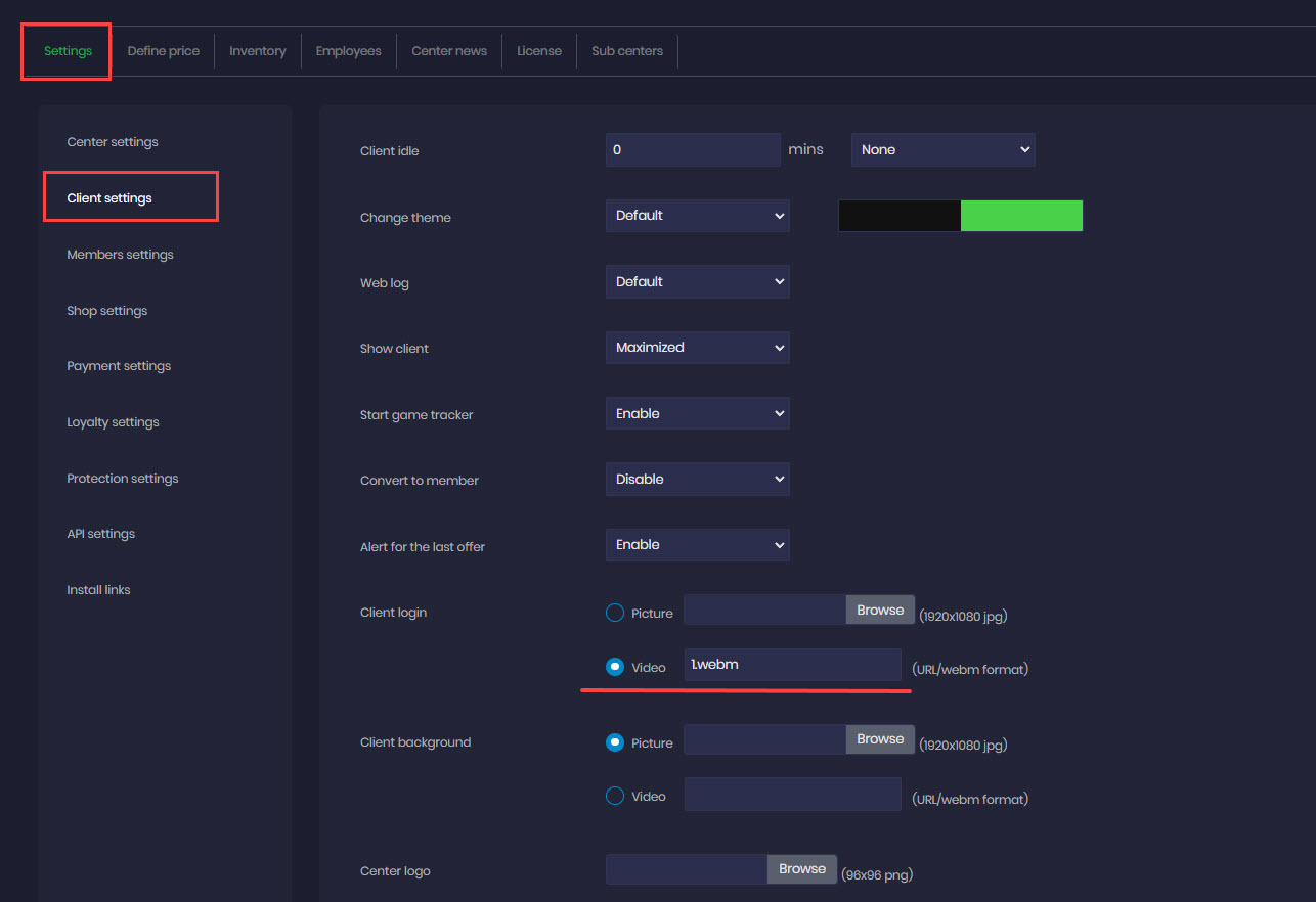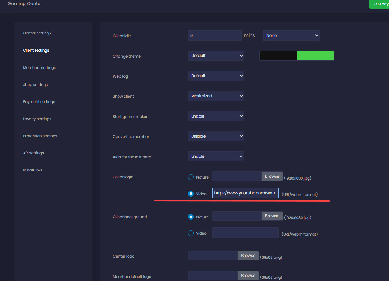 - The first option is to use YouTube links directly. In the cloud panel, navigate to Settings, then select Client Settings and Client Login. Choose the video option and enter the URL of the desired YouTube video. Scroll down and save the changes. (Figure 1).