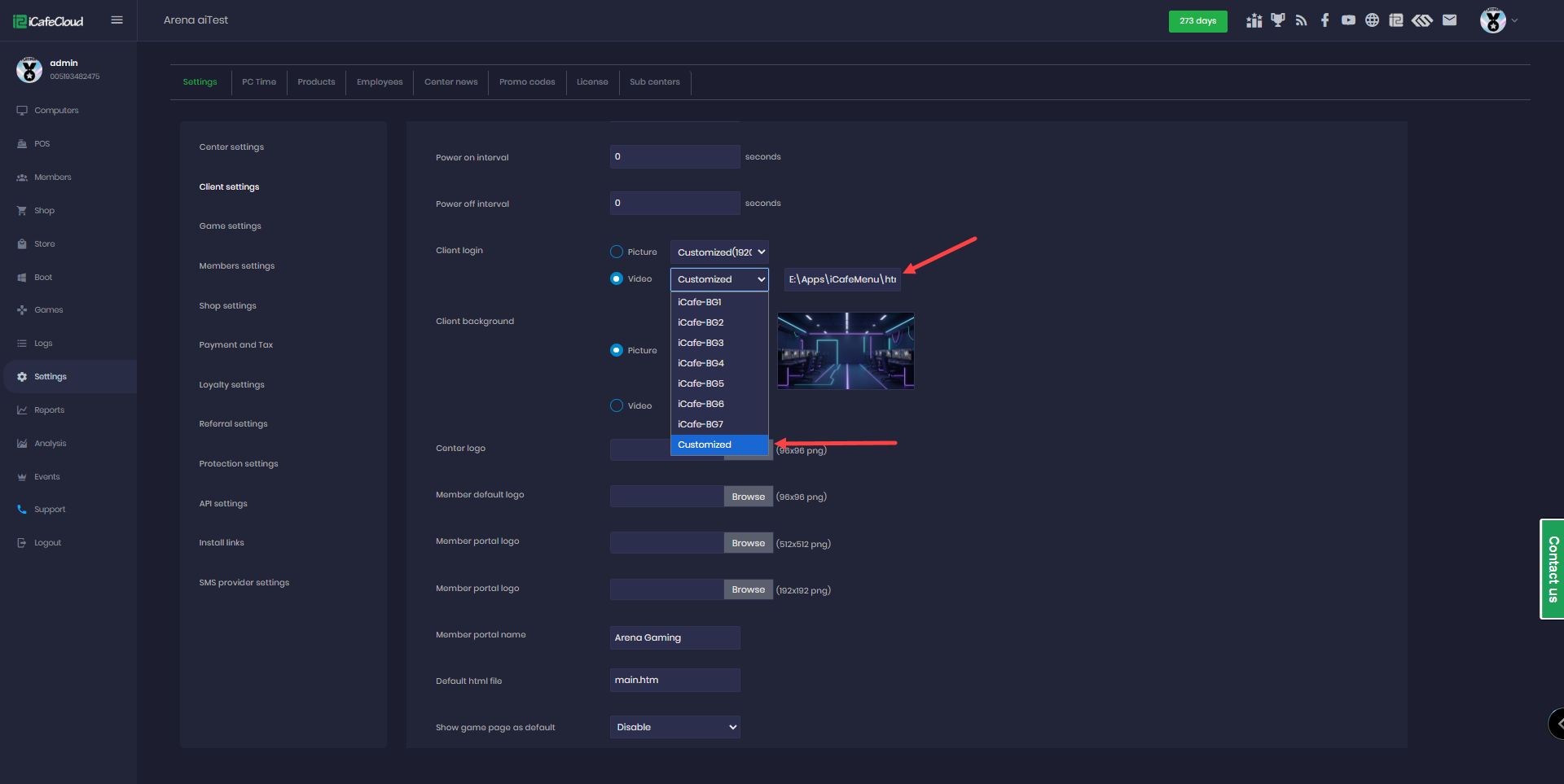 The following explains how to customize the iCafeMenu login page with a custom image or video, as well as how to set a custom image or video for the client background.