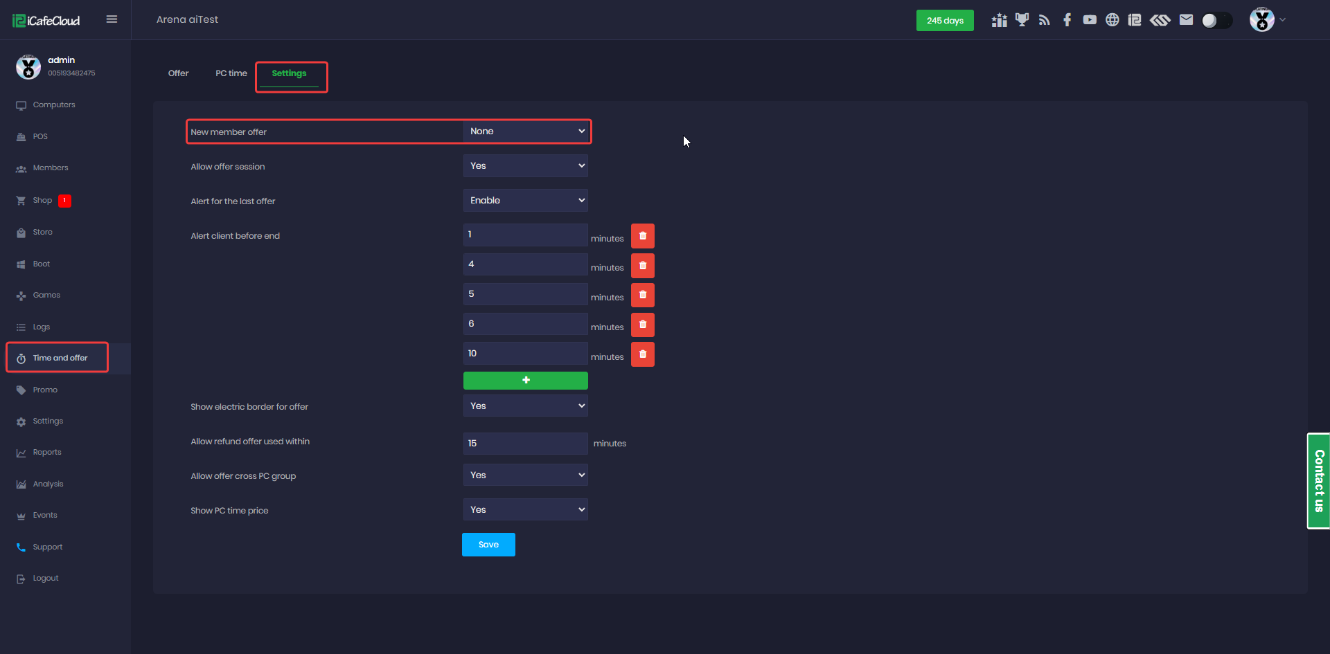 - To require all new member accounts to purchase a specific offer, enable the "New Member Offer" option. This setting can be found under "Time and Offer" in the "Settings" section. (Figure 1)