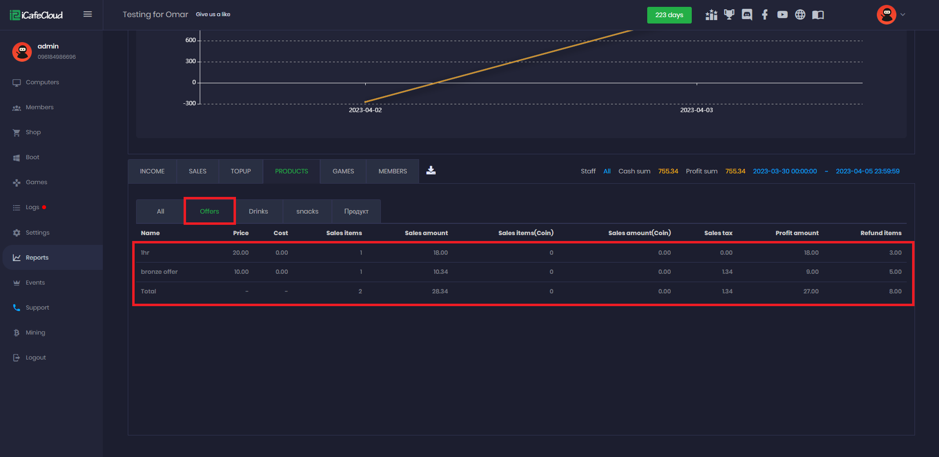 - All the offer transactions will be listed on the reports page as well (Figure 10).