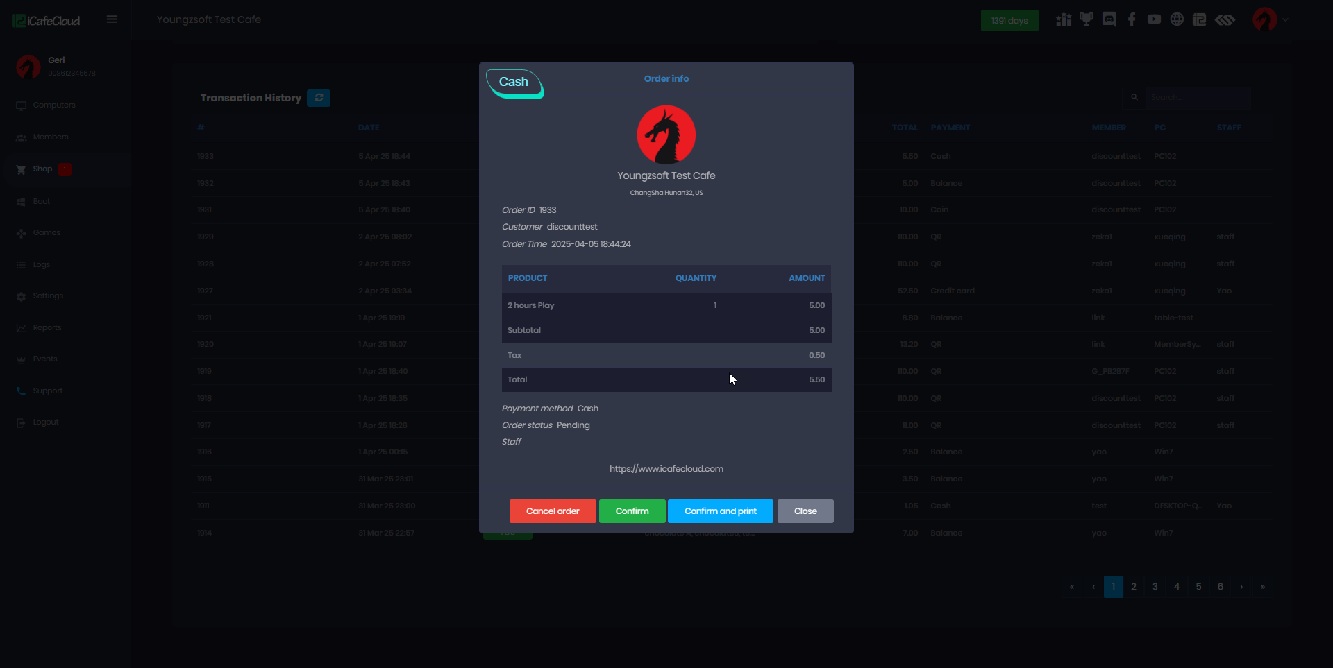 - When an order is paid by "Cash", it will appear as Pending on the admin panel. A notification sound will also play, and the payment must be manually confirmed by the admin from the cloud panel.(Figure 8 and 9).