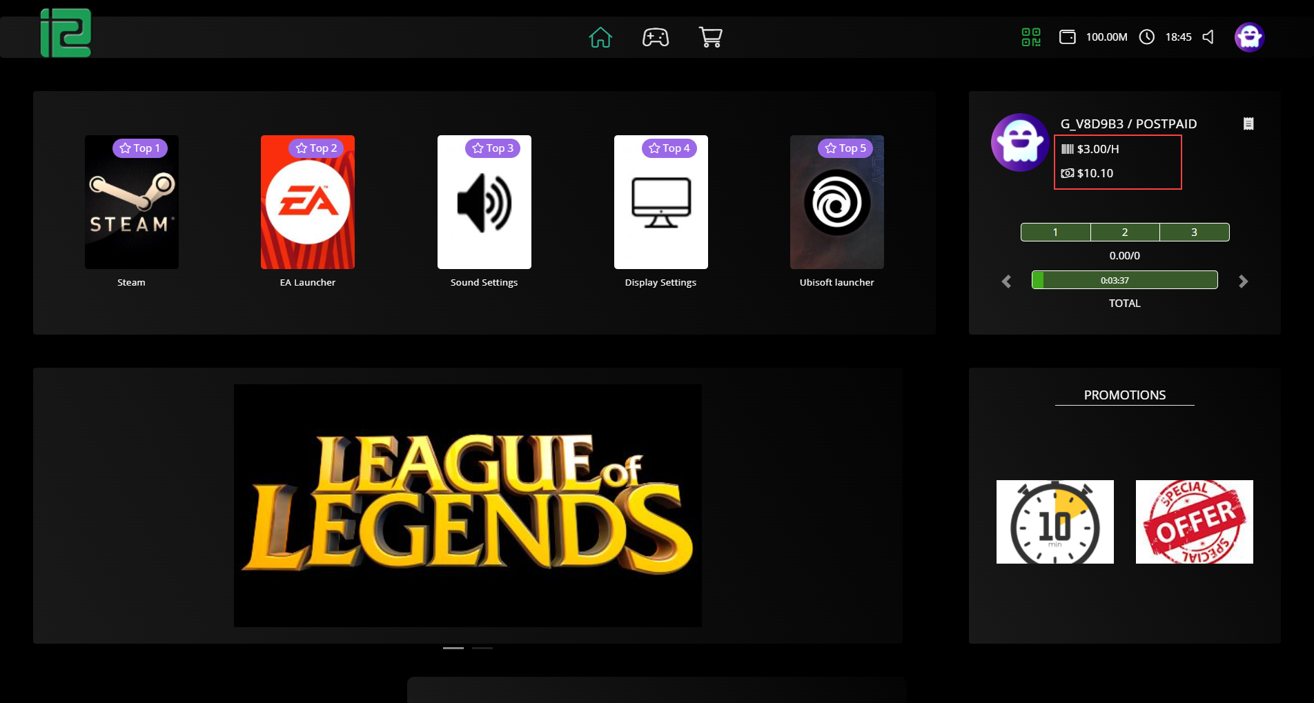 - Select a PC and click Start Postpaid Session.(Figure 2)