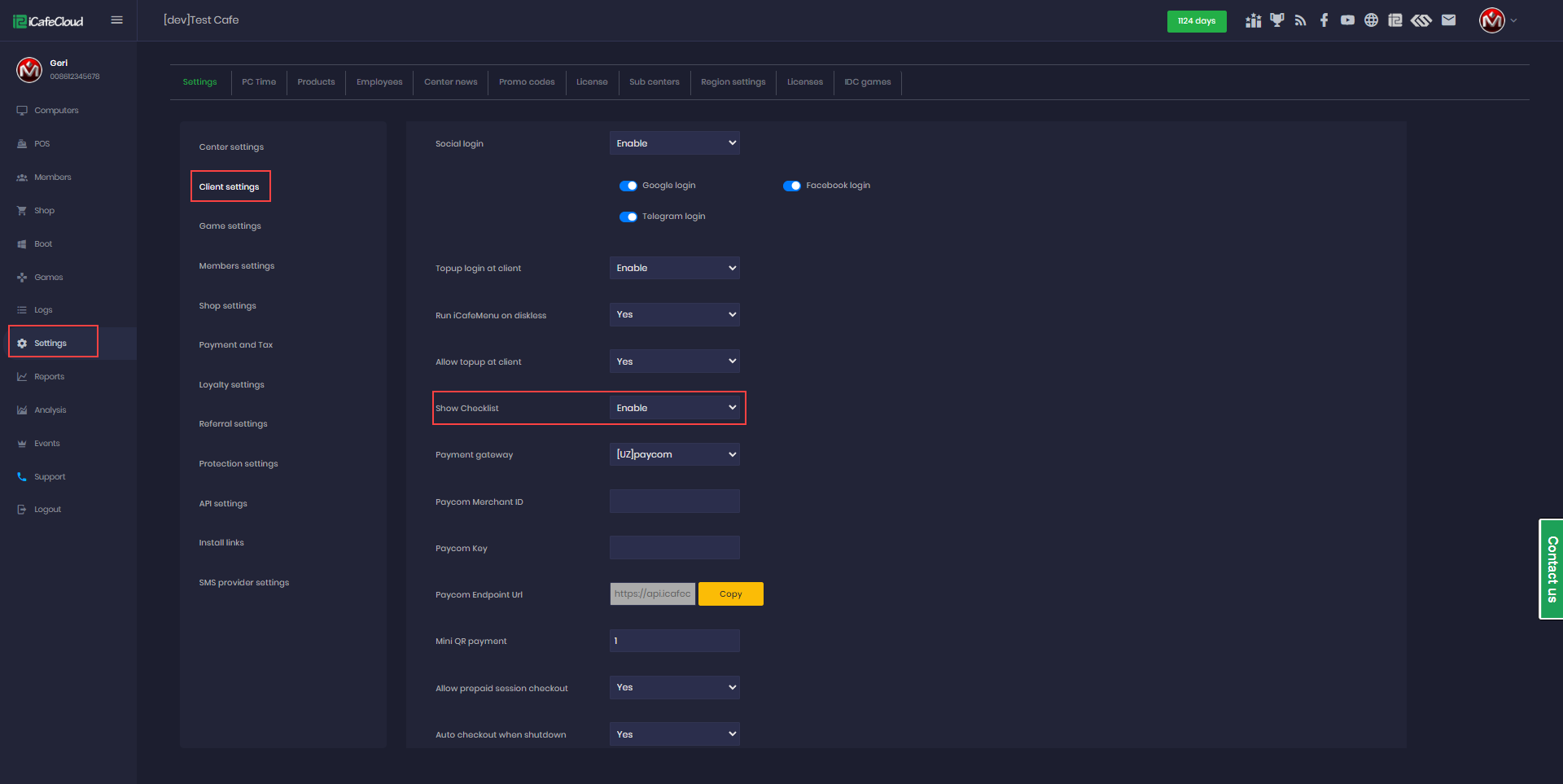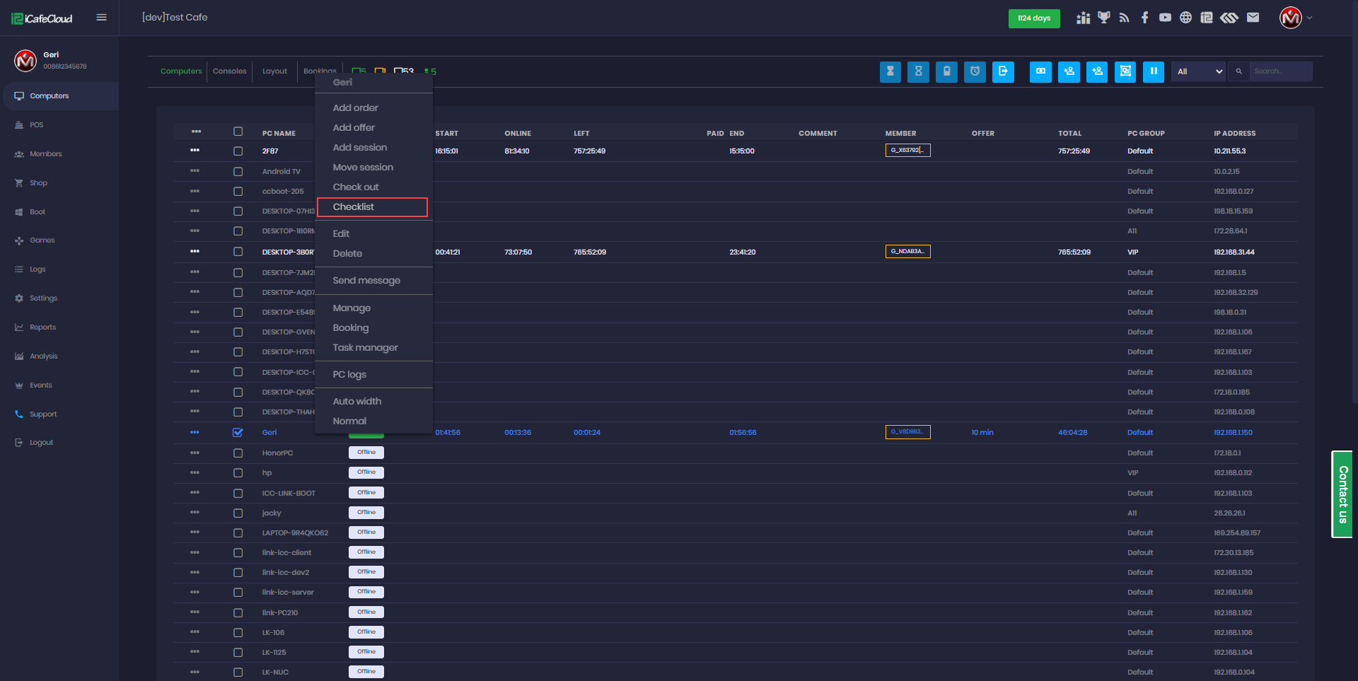 - Once finished playing and ready to leave, the customer can check out directly from the client side by clicking the Checklist button (Figure 5).