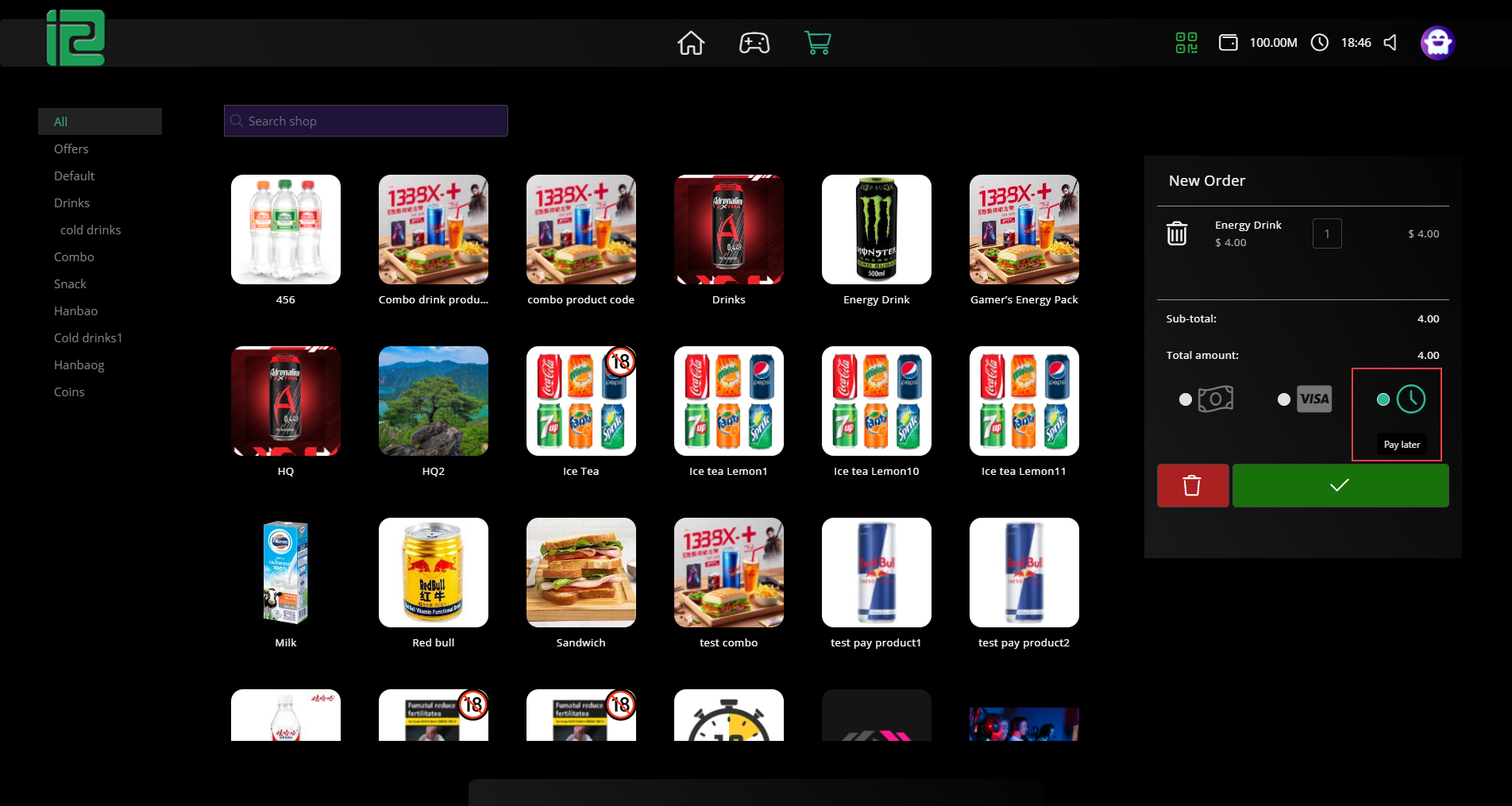 - In the client Shop, the customer can place an order and choose Pay Later. The amount will then be added to their total spend (Figure 4).