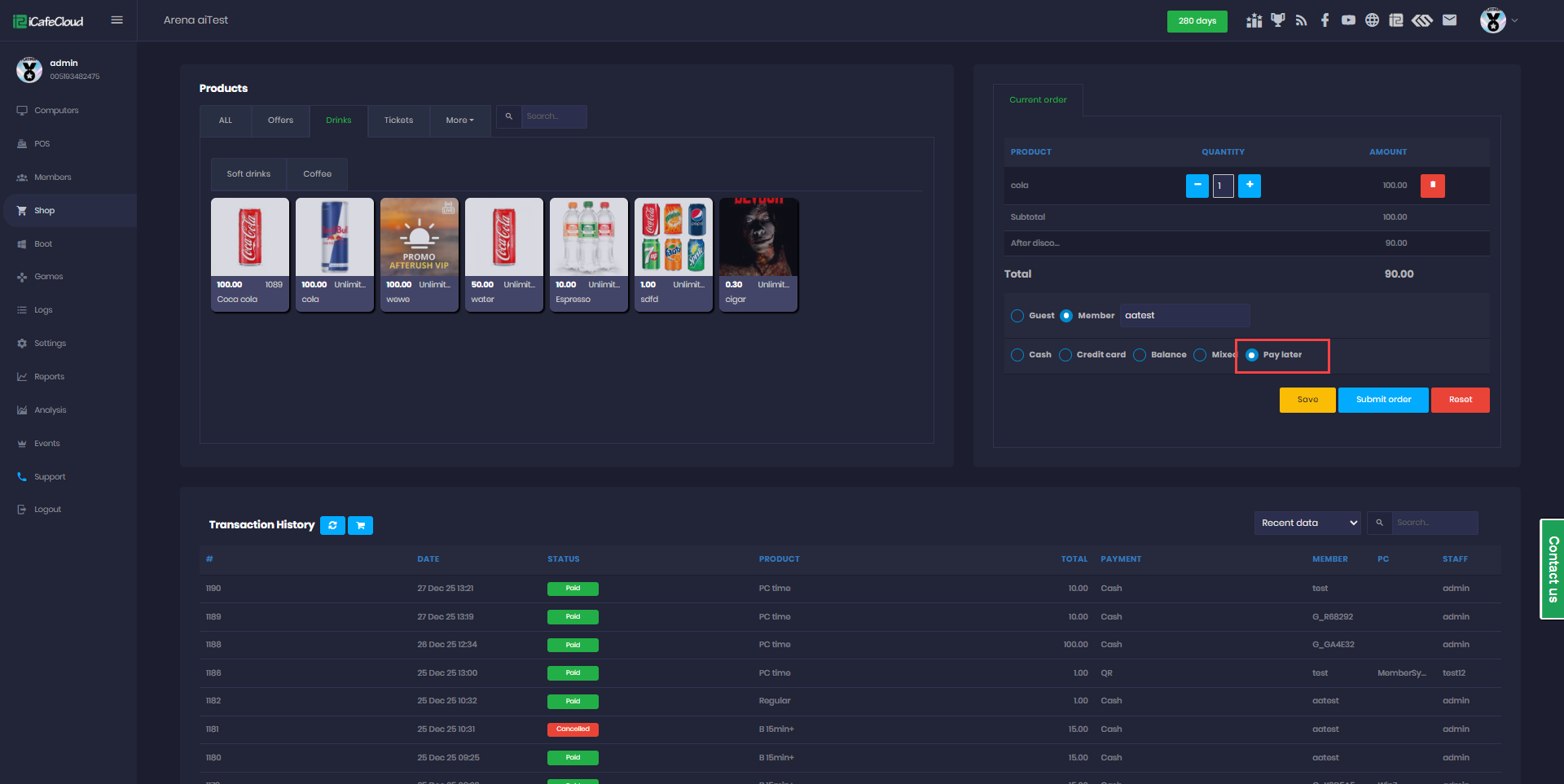 The following explains how to configure the Pay Later function, which allows customers to pay for all purchases and session time costs together at the end of their session.