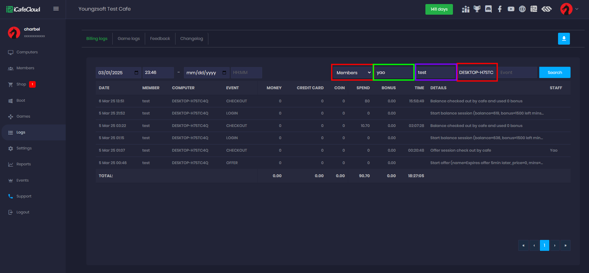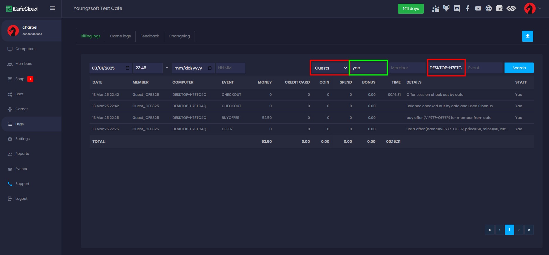 - By right-clicking the chosen PC and selecting "PC log," the cashier may access the record of any PC. (Figure 3)