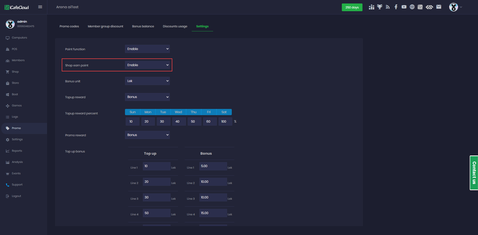 - To enable the point system, go to the Promo page - Settings and select enable in the point function option and click the “Save” button (Figure 1).