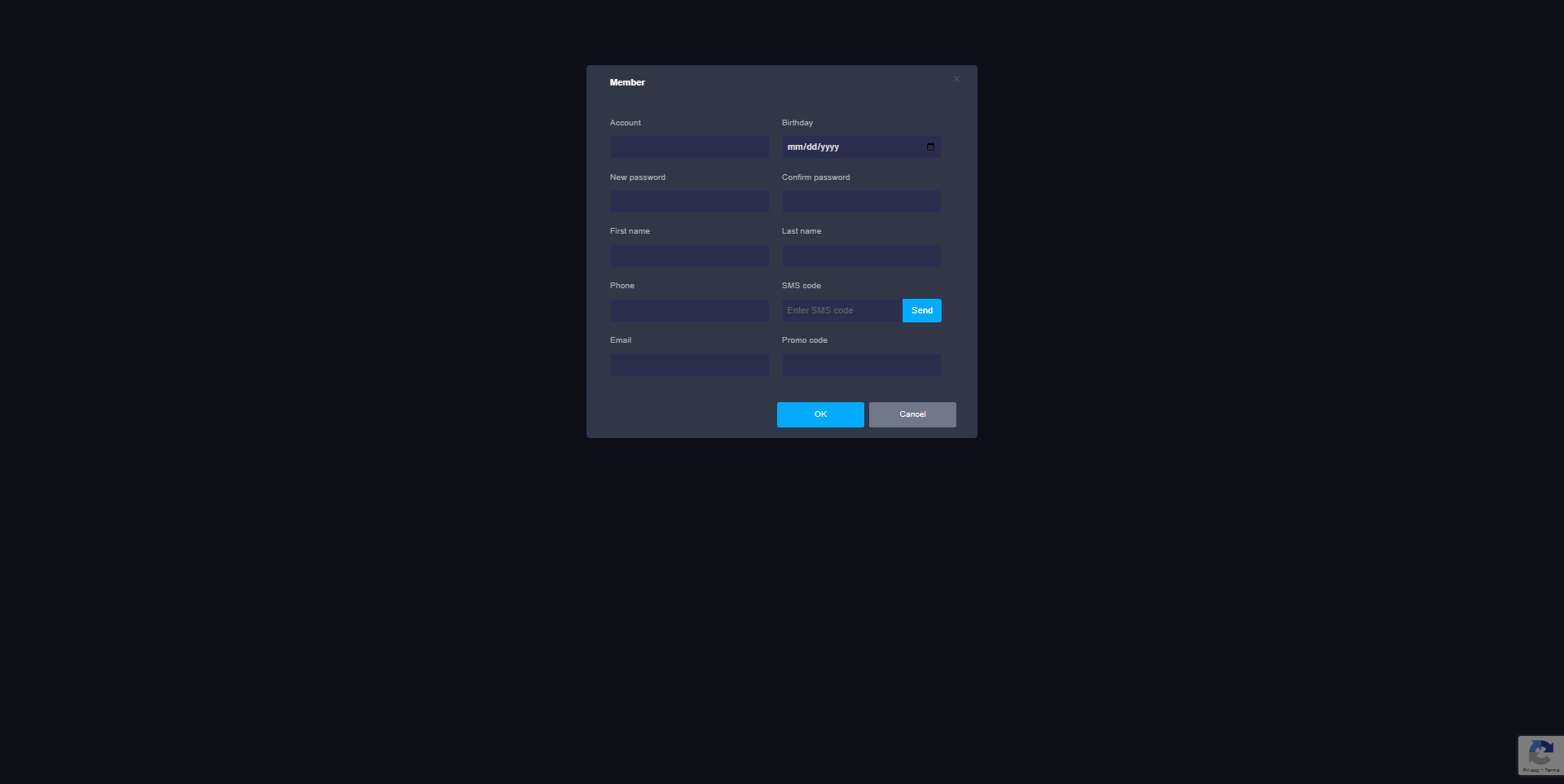 - Fill in the account details and click OK. Ensure that "New member offer" is set to None in Settings > Member Settings > New Member Offer.