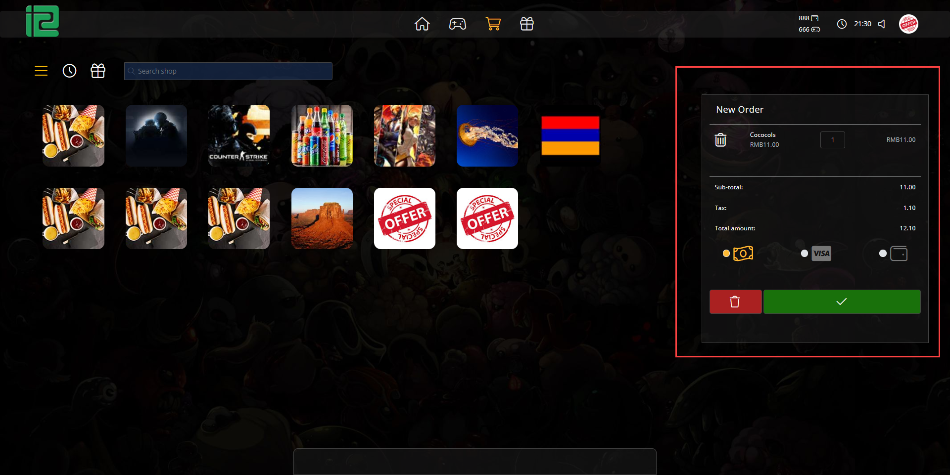 The following explains how to use the shop on the POS page.