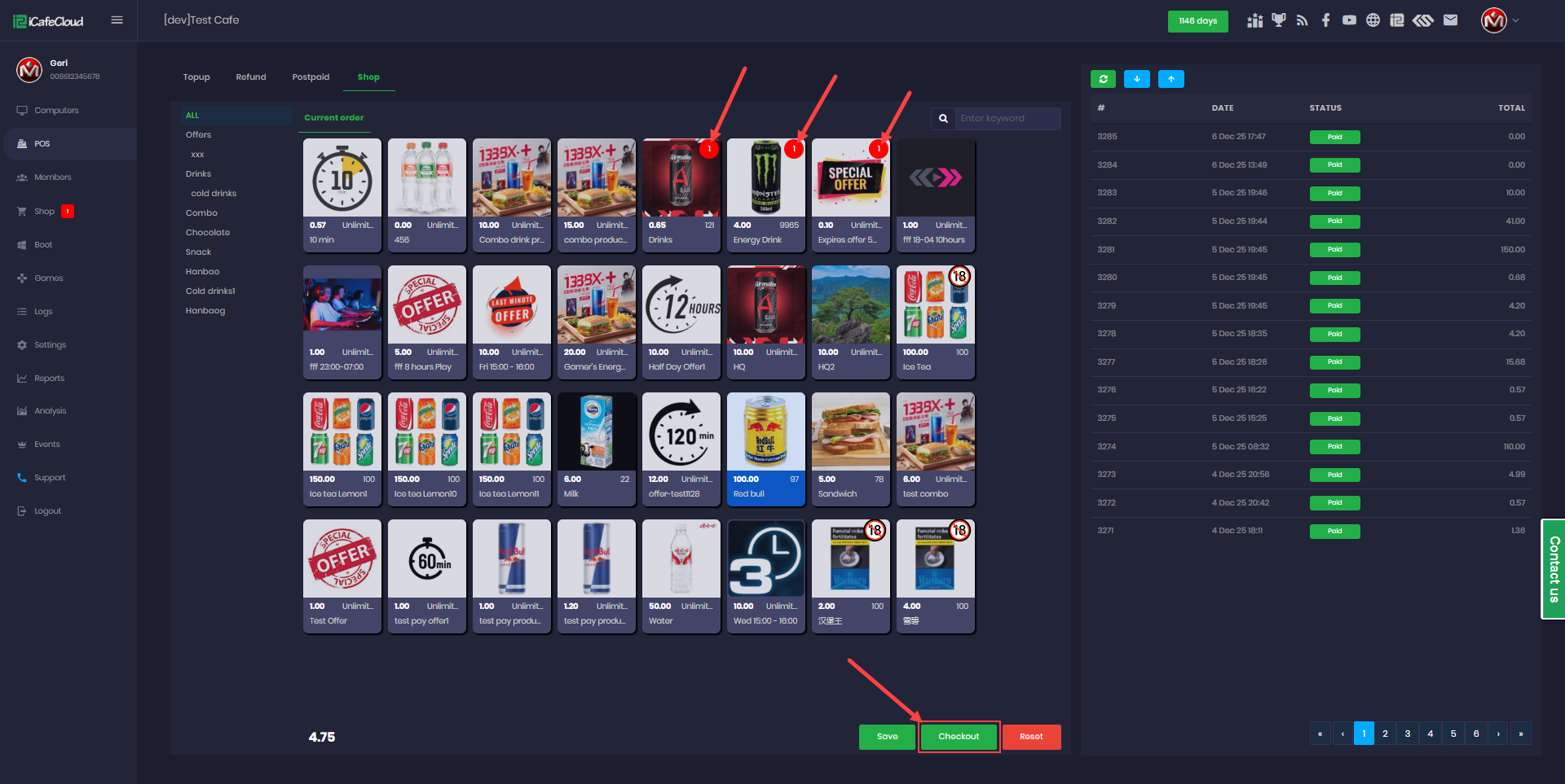 - On the POS shop page, you can view all available products and offers ready for purchase. (Figure 1)