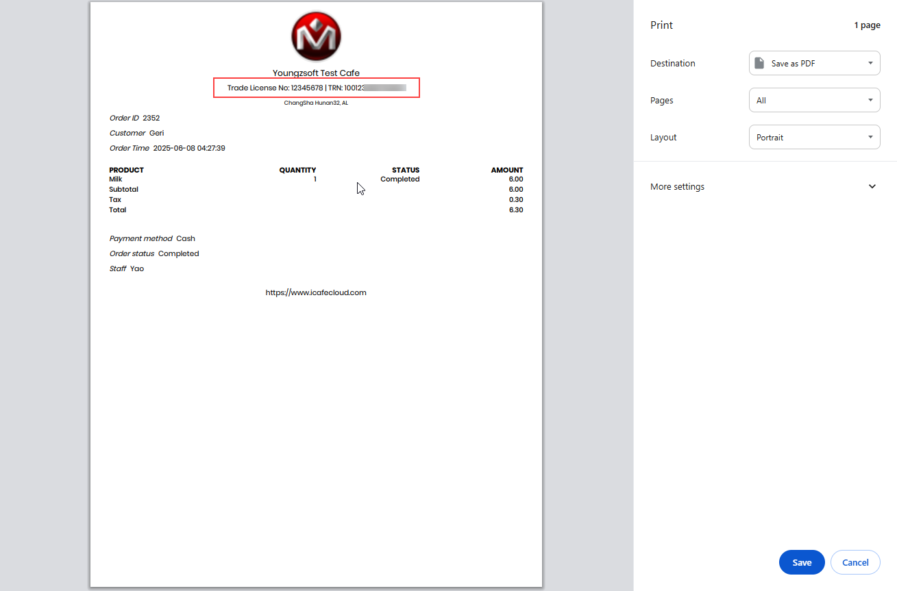 - Once the settings are saved, you can print a ticket to verify that the new information appears correctly.(Figure 2)
