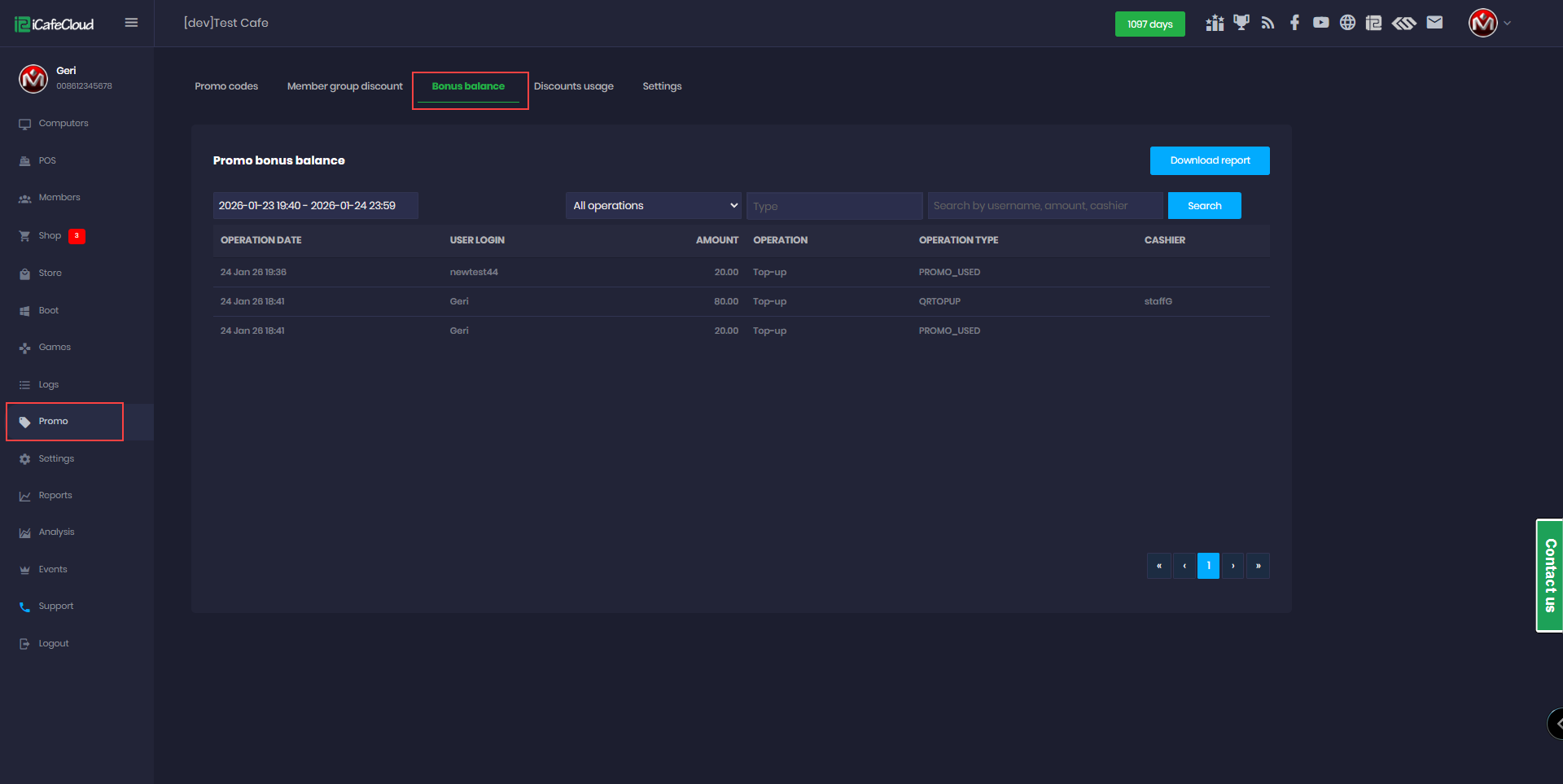 - Navigate to the Promo page, go to Bonus Balance, and review all the listed operations. (Figure 1)
