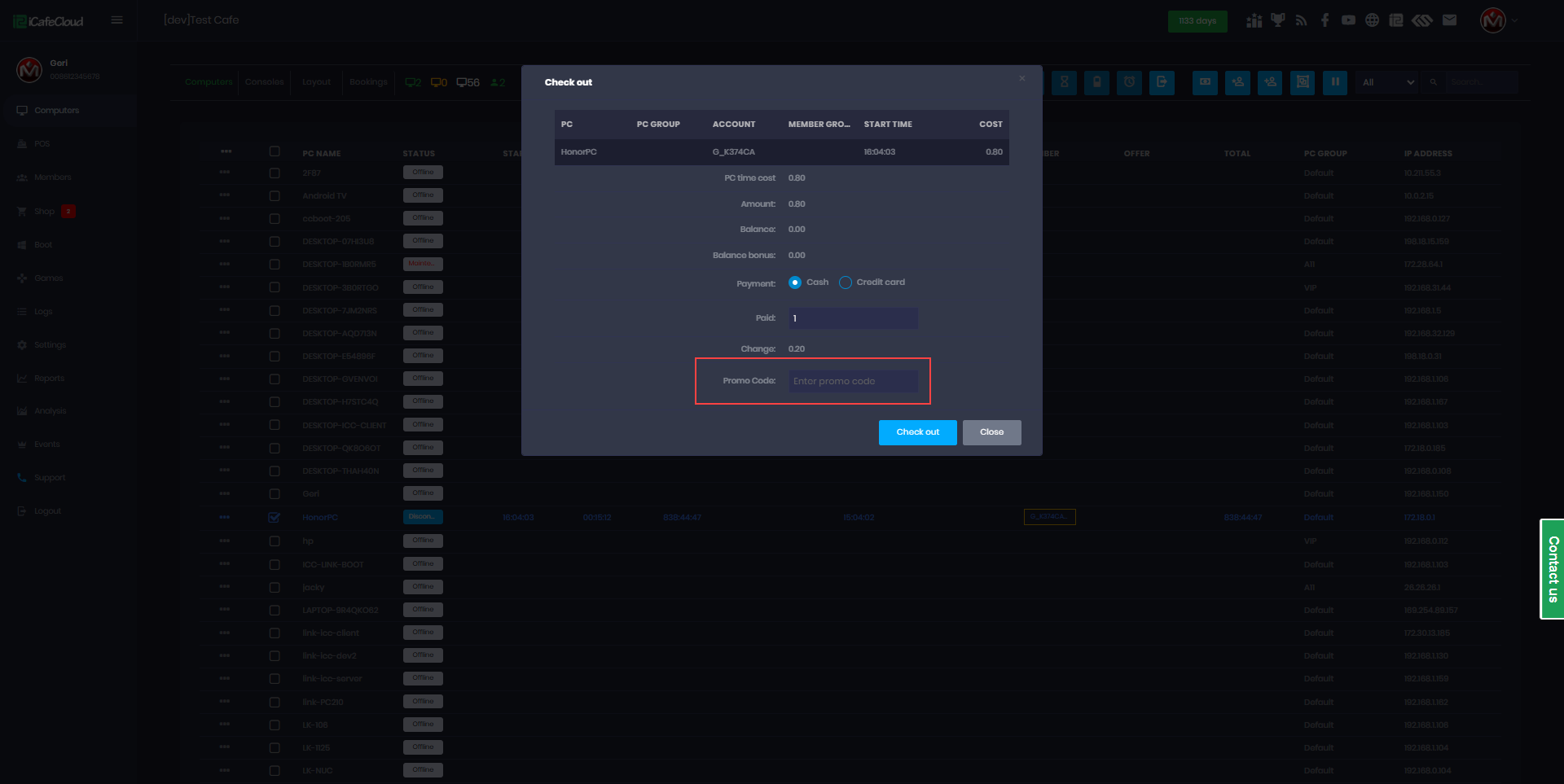 - Once you checkout a postpaid session, a Promo Code field will be displayed (Figure 3).
