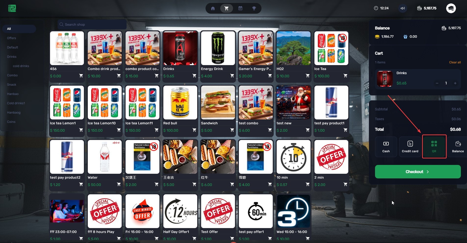 - On the client side, once the user accesses the Shop, the QR payment icon will appear among the available payment options. (Figure 3)