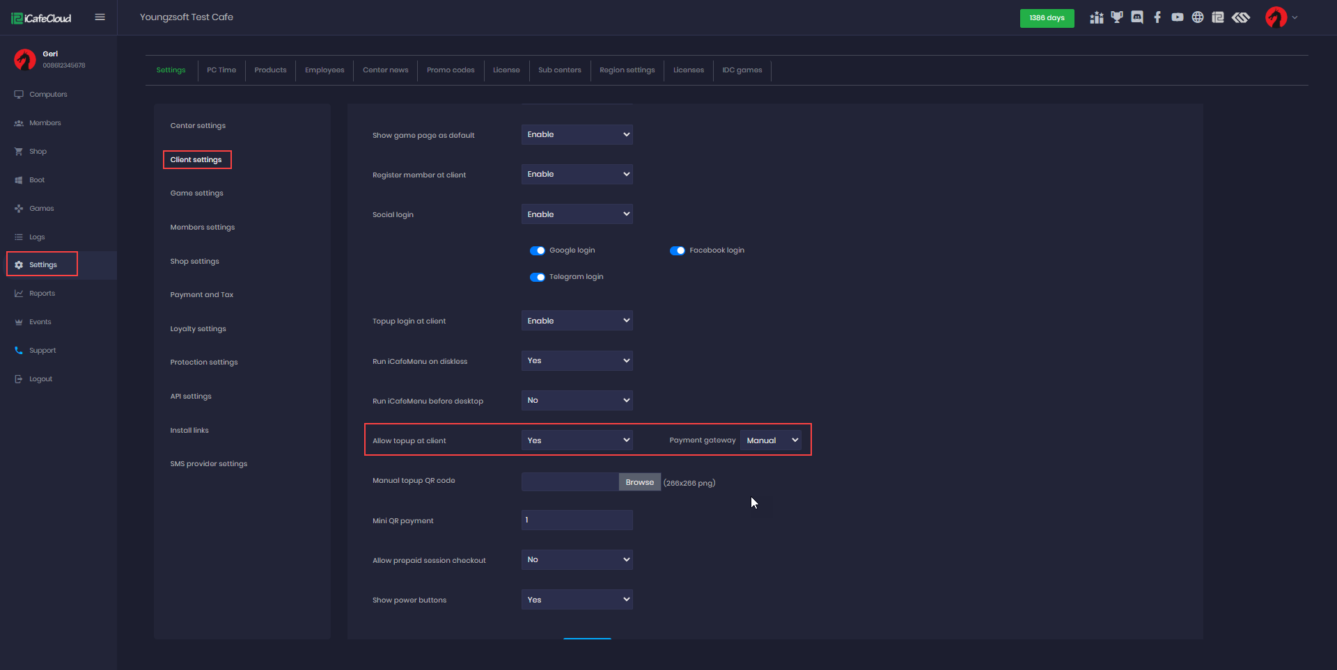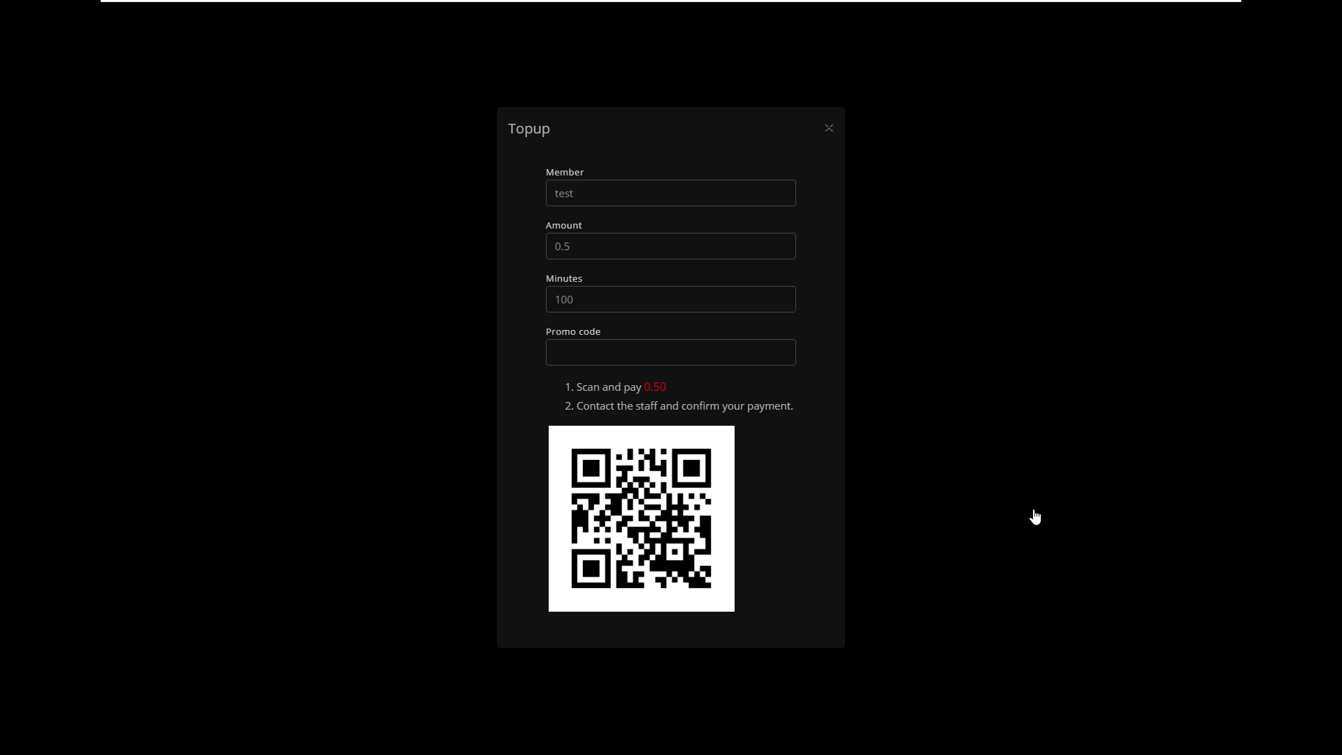 The following explains how to manually add your own QR code in iCafeCloud and use it for topup and payments.