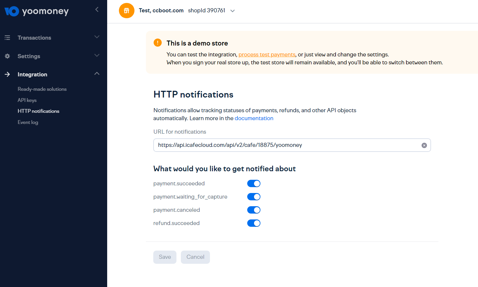 [ https://api.icafecloud.com/api/v2/cafe/YOUR_CAFE_ID/yoomoney ] - Turn on all the options and Save the changes(Figure 1)
