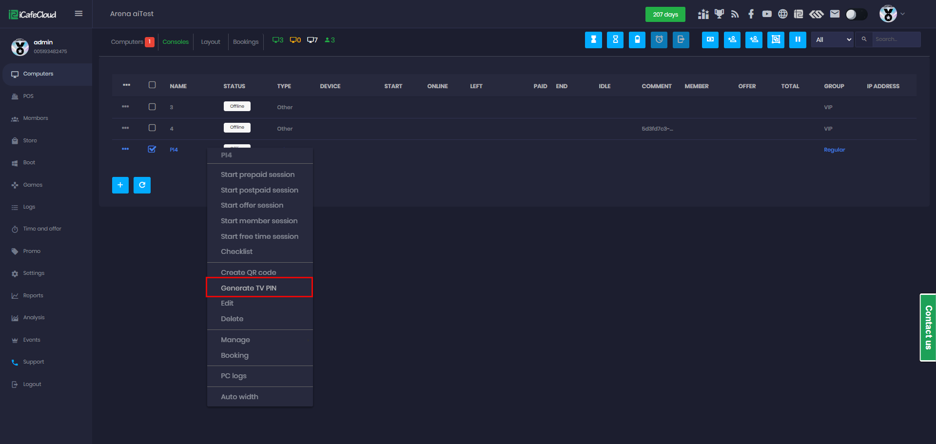 - Select the Console you just added, then right-click to open the menu and click Generate TV PIN. (Figure 7)