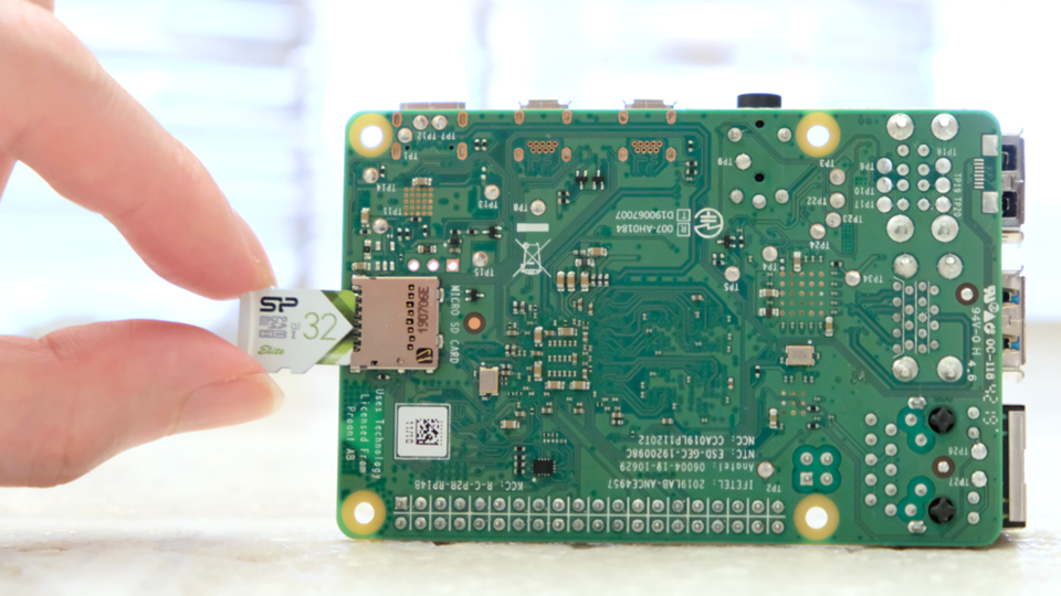 - Insert the MicroSD card into the Raspberry Pi. (Figure 4)