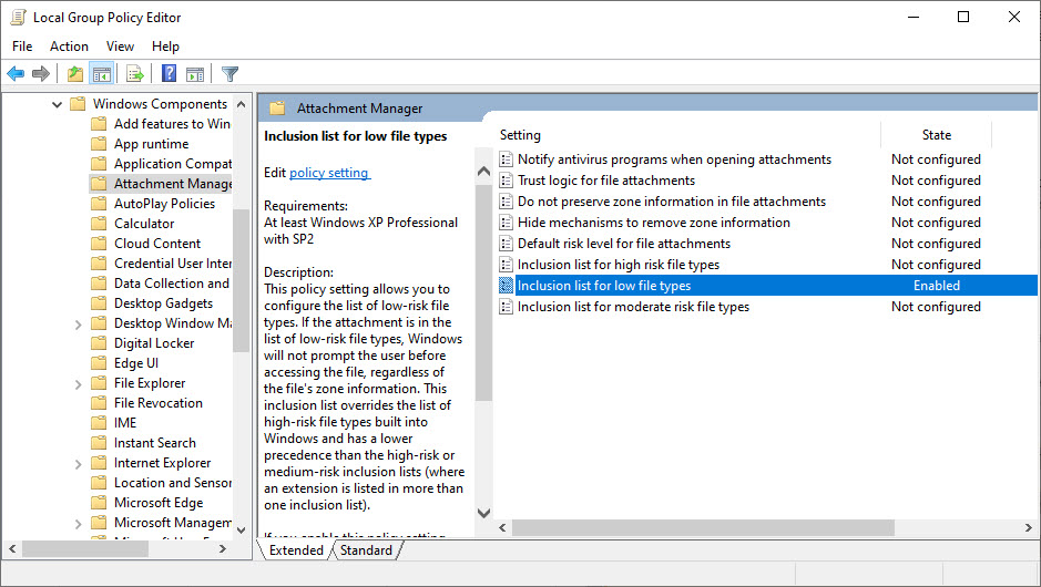 2.Open Local Computer Policy / User Configuration / Administrative Templates / Windows Components / Attachment Manager